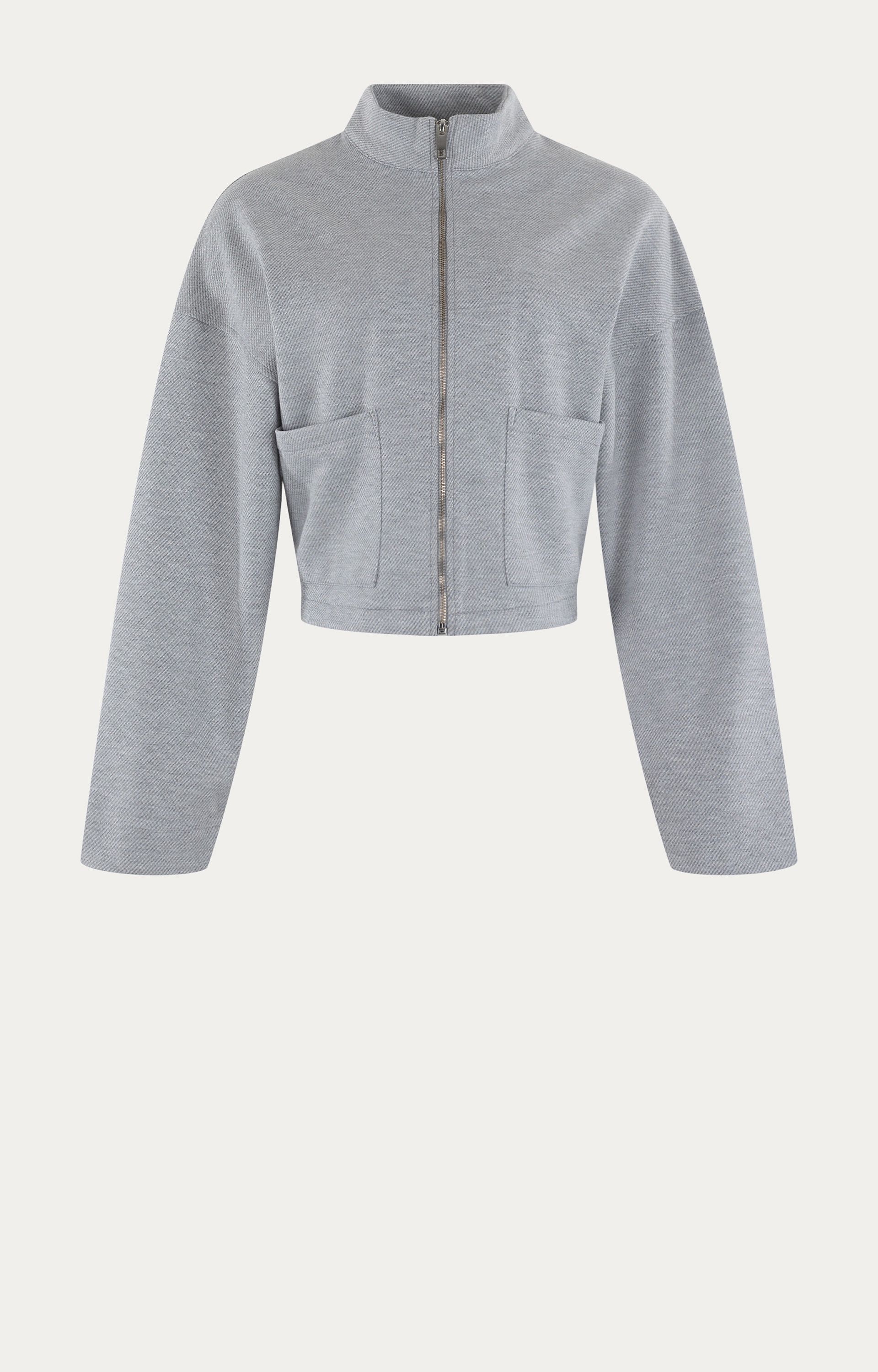 Kenmerken: ritsluiting, zakken aan de voorkant, ronde kraag, normale pasvorm, lichtgrijze kleur