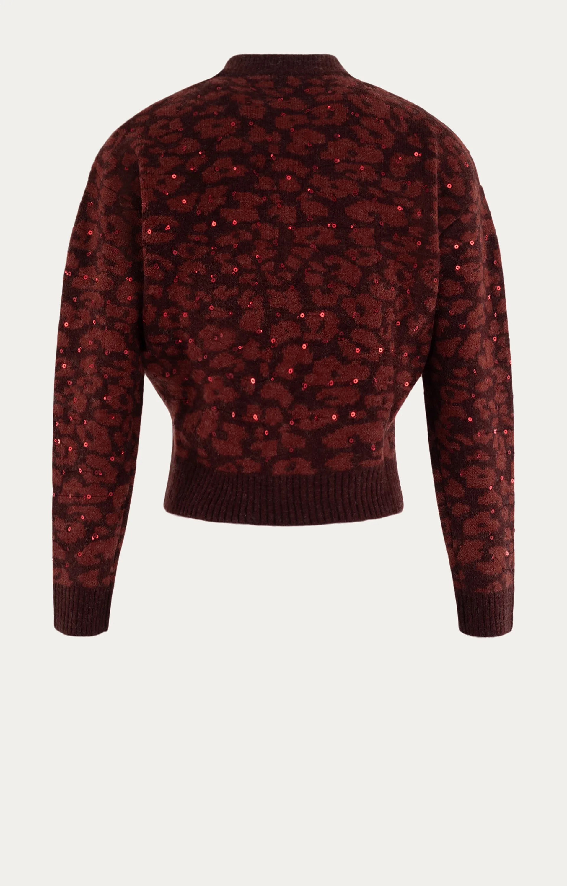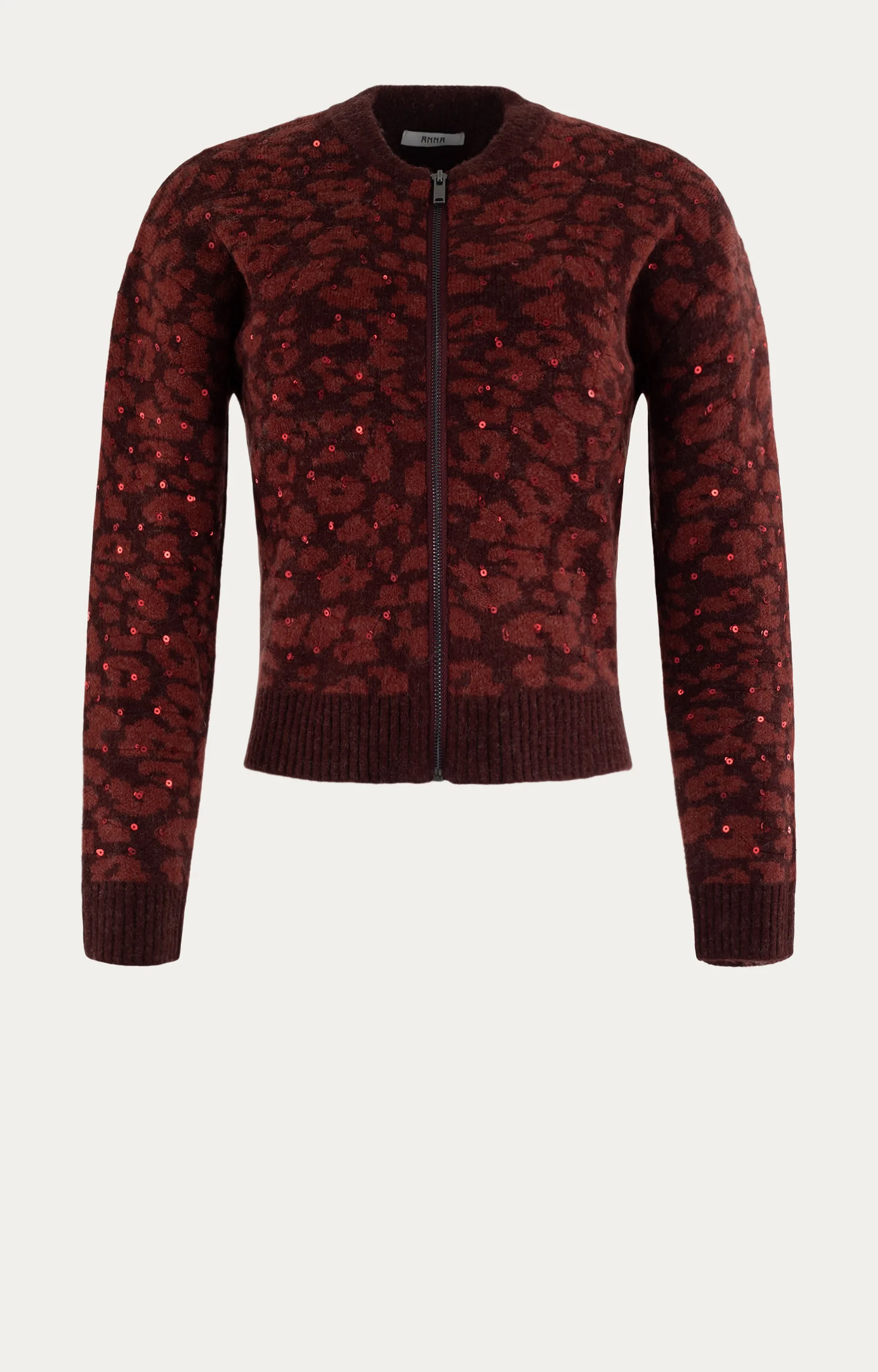 Dit Anna vest in merlot dessin is een opvallend item voor het winterseizoen. Het vest heeft een panterprint met glitterdetails die zorgen voor een speels effect. De geribde boorden en ronde hals geven het ontwerp een comfortabele pasvorm en nette afwerking. Voorzien van een ritssluiting aan de voorzijde en vervaardigd uit een mix van acryl, polyamide, wol en elastaan voor warmte en draagcomfort.