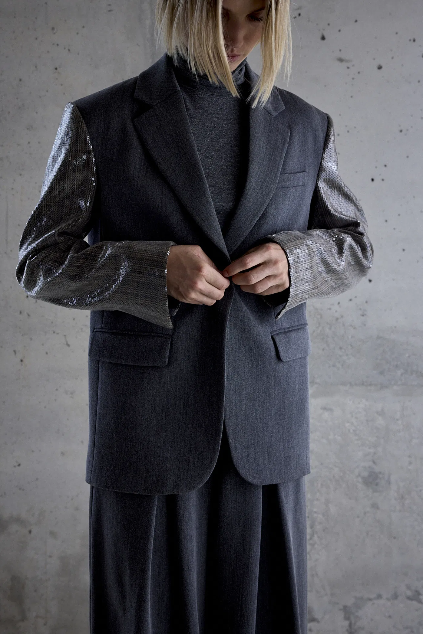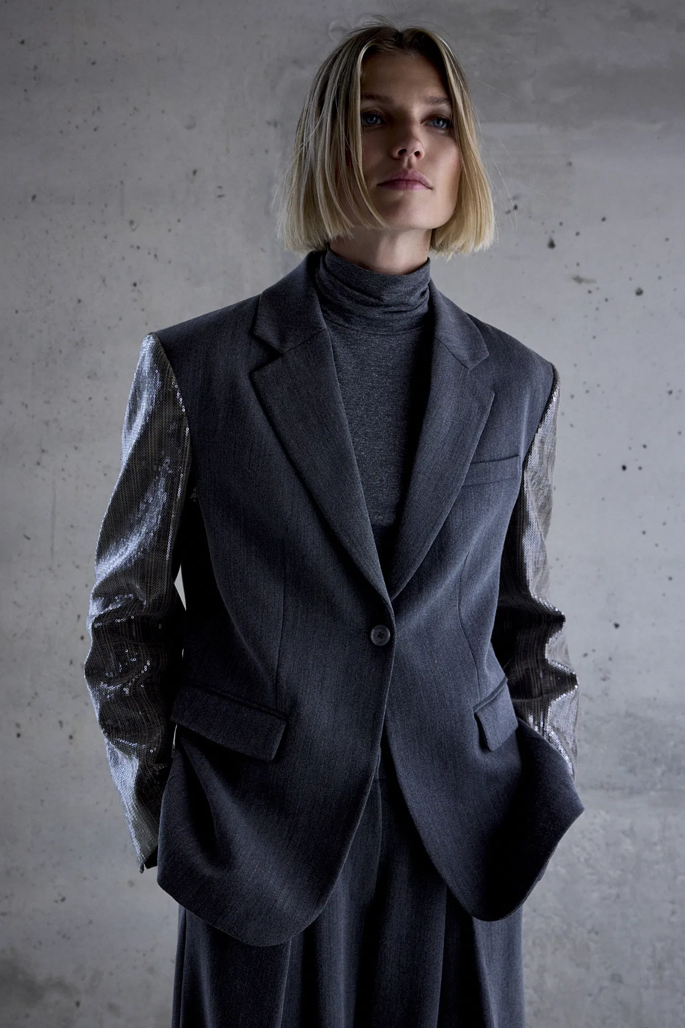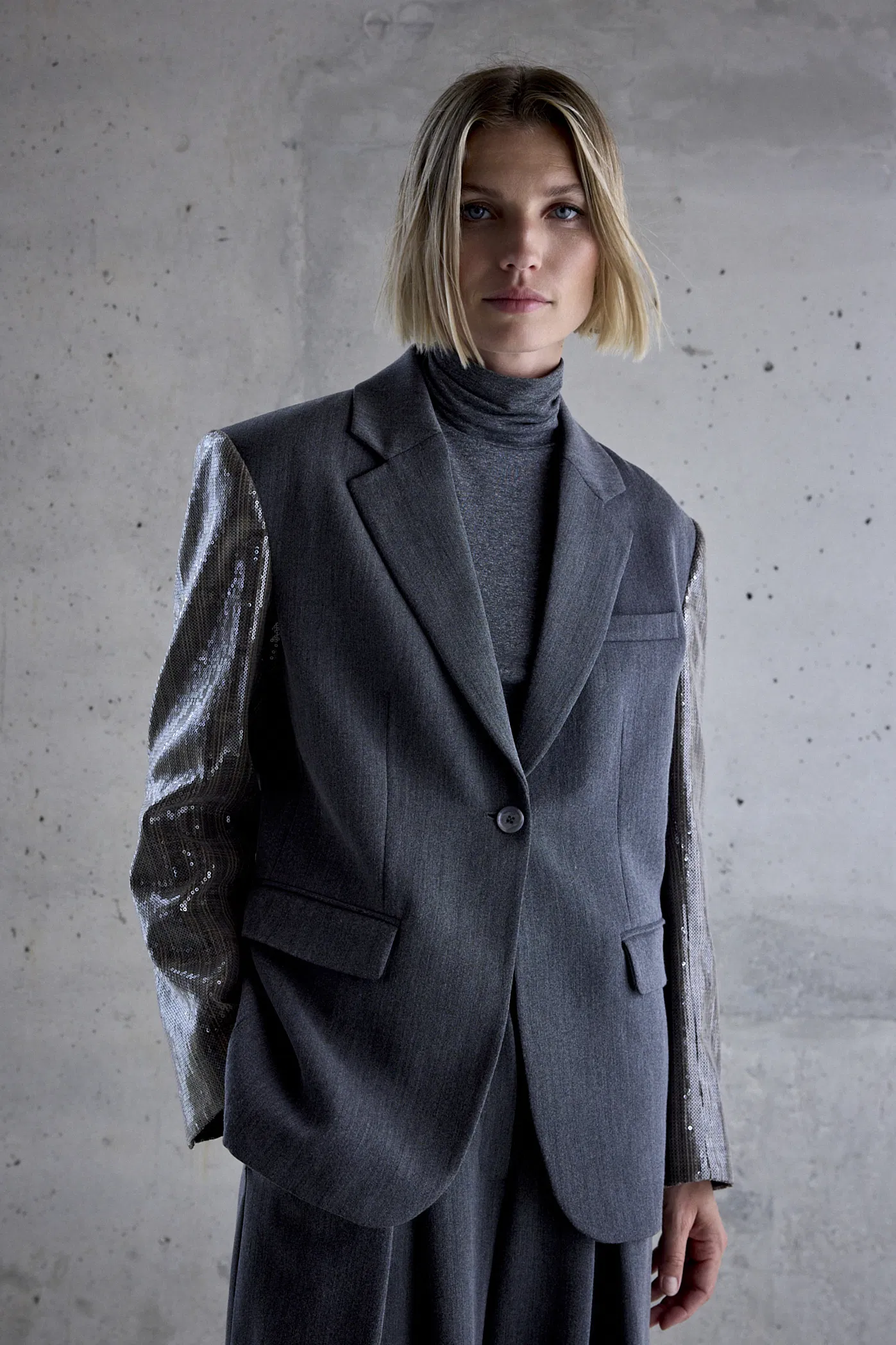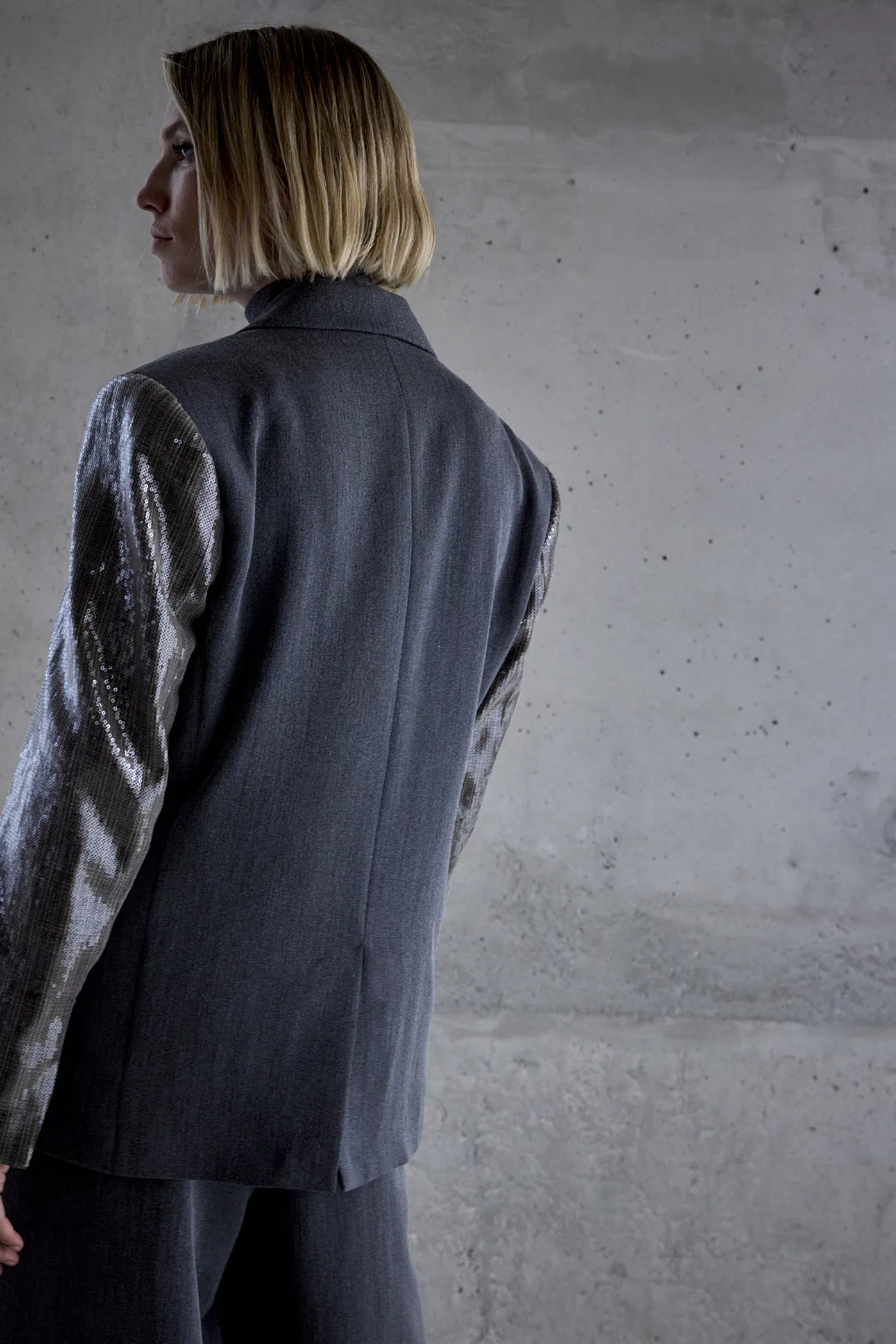 Omschrijving: Een boyfriend blazer met pailletten op de mouwen, wat deze blazer een bijzondere uitstraling geeft.