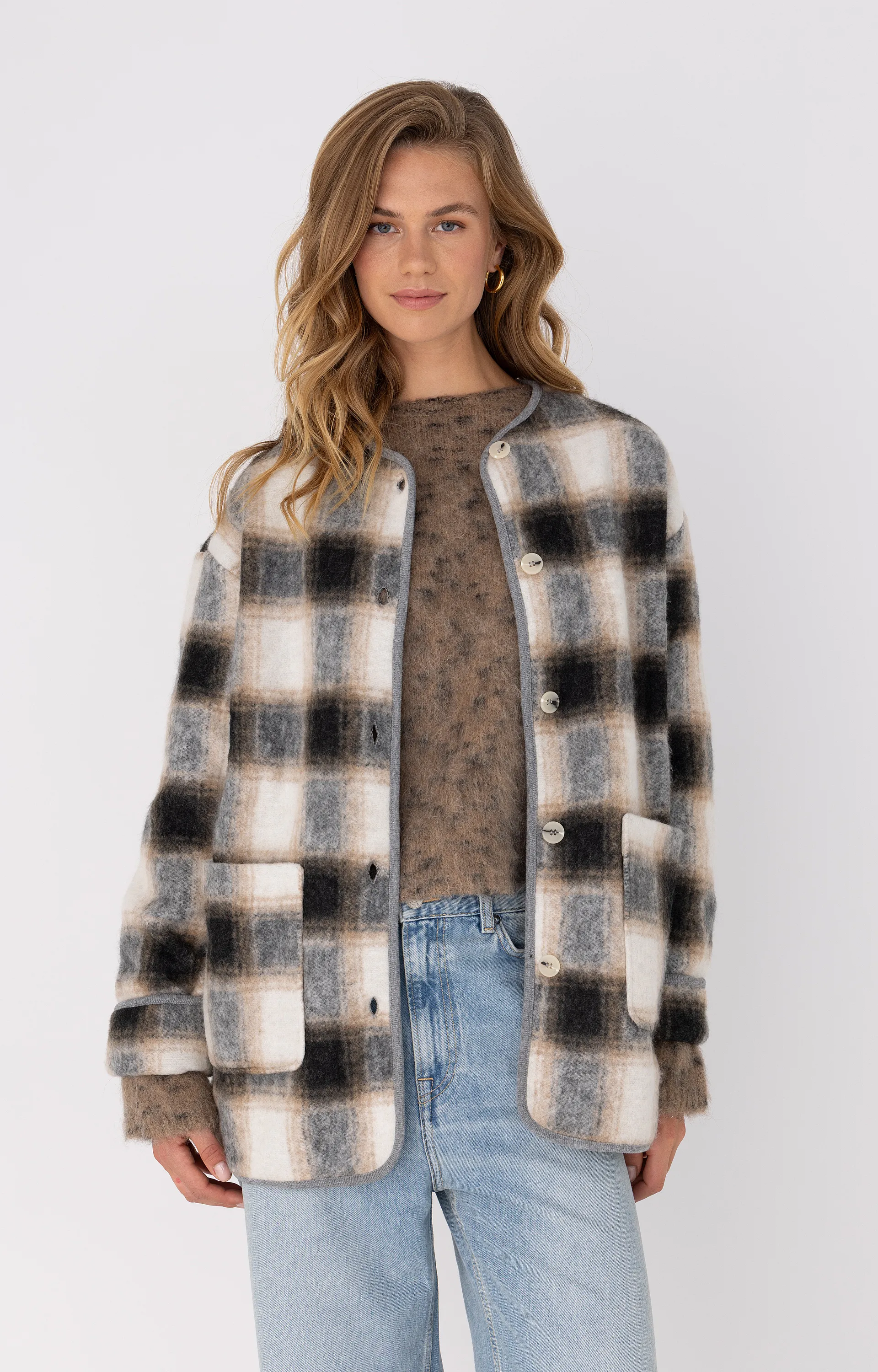 Deze winterblazer van Anna combineert warme materialen met een klassiek ruitpatroon. De blazer heeft een ronde hals en is netjes afgewerkt met een jersey bies langs de rand. Dankzij de knoopsluiting en de opgestikte zakken krijgt het ontwerp een praktische touch. De blazer is volledig gevoerd, wat zorgt voor extra draagcomfort tijdens koude dagen. Een veelzijdig item voor een gelaagde winterlook.