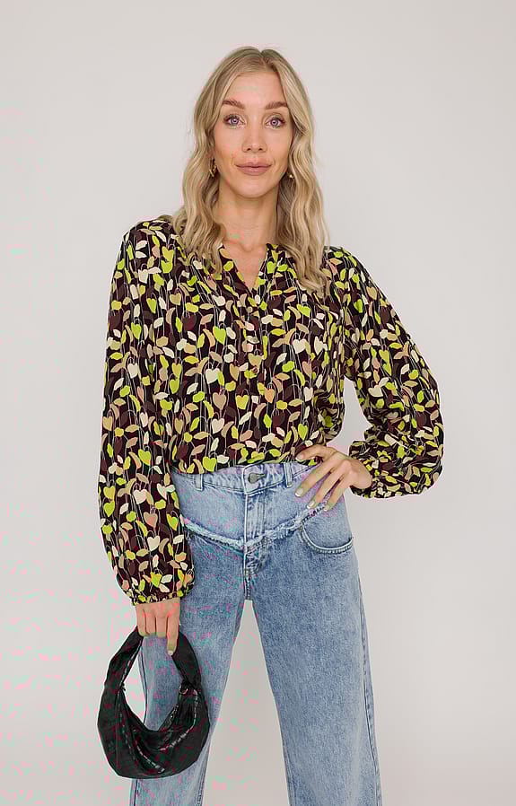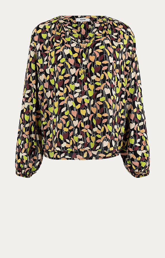 Omschrijving: Deze kleurrijke blouse van Anna is gemaakt van een combinatie van Lenzing Ecovero viscose en viscose. De blouse heeft een ronde halslijn met een V-inkeping en een goudkleurige knoopsluiting tot halverwege. De lange ballonmouwen en het all-over dessin geven de blouse een unieke uitstraling.