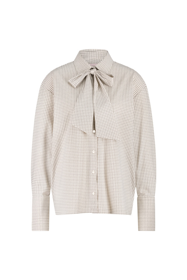 De Hollis dot check blouse van Studio Anneloes in Kit en Espresso is een stijlvolle blouse met een moderne twist. De subtiele print en oversized fit zorgen voor een nonchalante uitstraling, terwijl de grote strik bij de hals het geheel een vrouwelijke touch geeft. Die strik is bovendien afneembaar: handig én veelzijdig.