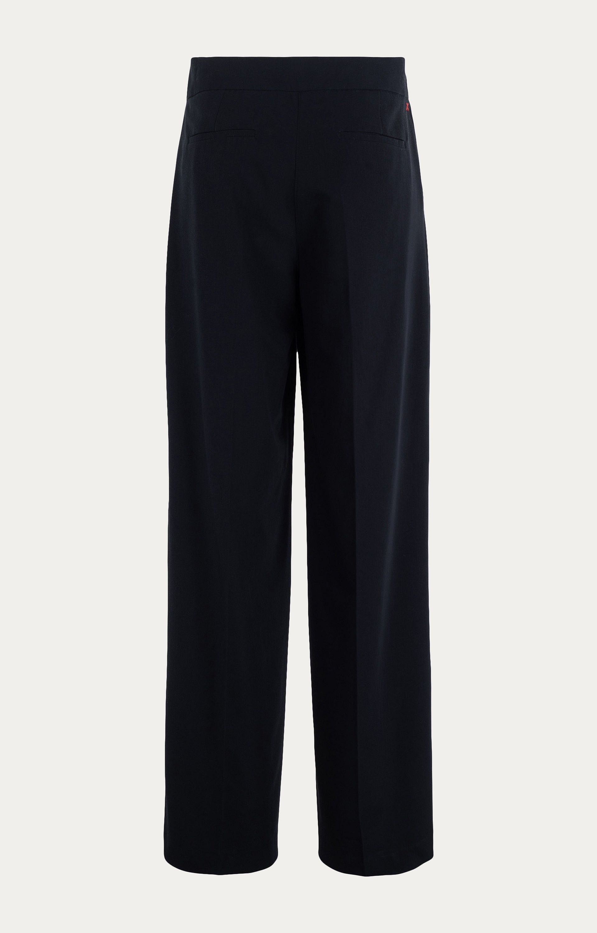 Deze broek van Anna Blue is gemaakt van een zachte mix van polyamide, viscose en elastaan en is geschikt voor het winterseizoen. De dark blue kleur en de schuine tailleband met knoopsluiting geven het model een moderne uitstraling. De broek is voorzien van steekzakken aan de voorzijde en fake paspelzakken aan de achterkant. De rechte pijpen zorgen voor een ontspannen pasvorm. Combineer met een blouse of trui voor een complete outfit.