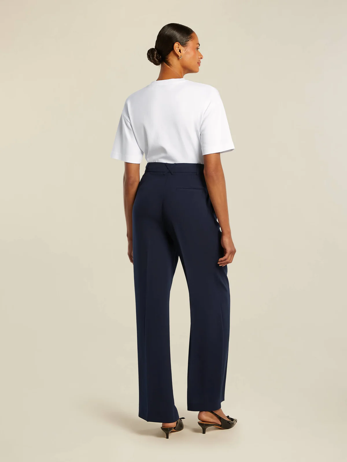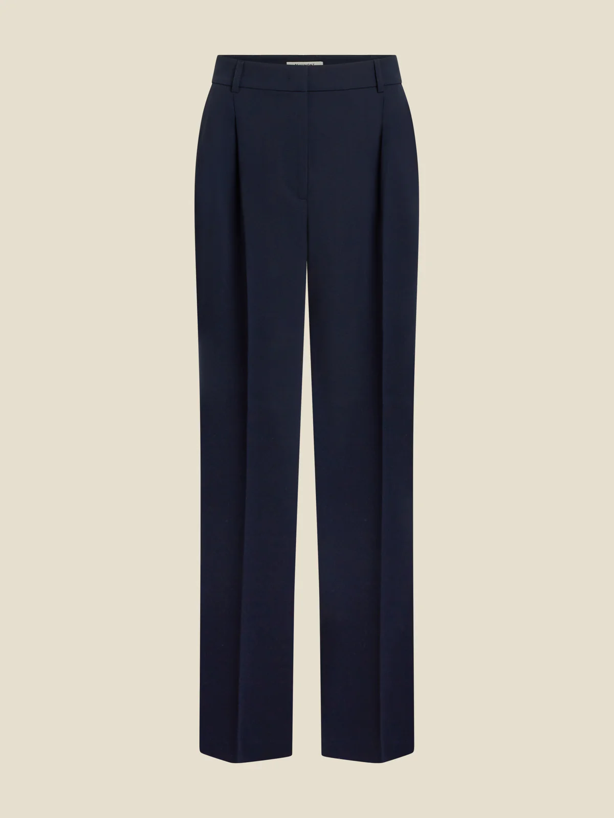 Broek met twee plooien in crêpekwaliteit Sluiting aan de voorkant met 2 haakjes en oogjes...meer