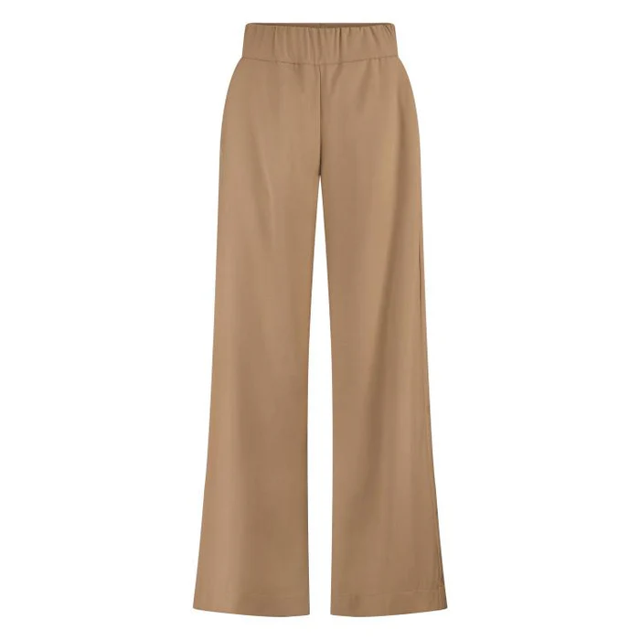 De Seme Pants heeft een high waist en een elastieken band voor een perfecte pasvorm en extra draagcomfort. In een warme camel kleur die je gemakkelijk tone-on-tone kunt stylen voor een stijlvolle en rustige look. Combineer met een basic top of blouse voor een relaxte maar toch trendy outfit.