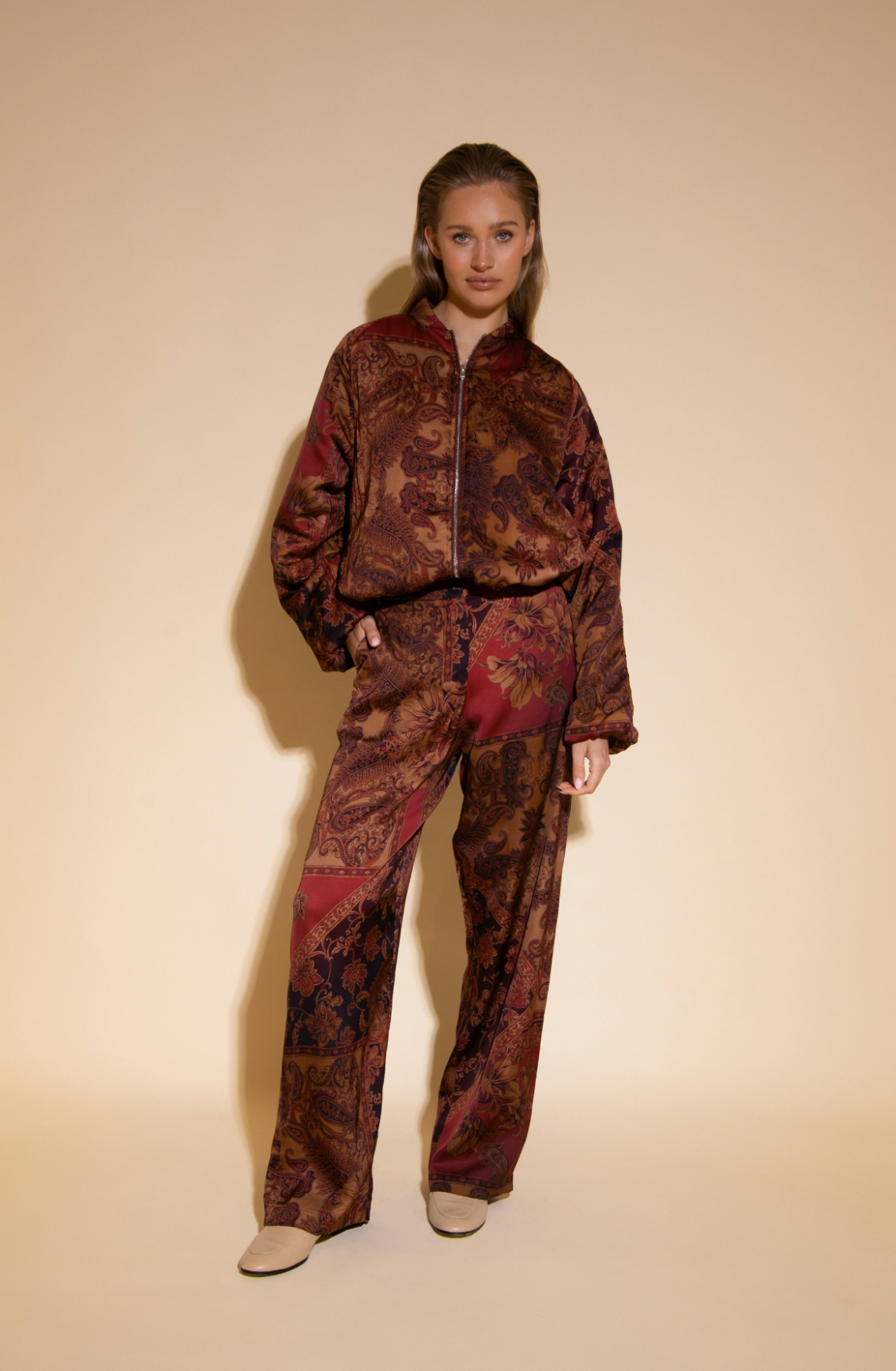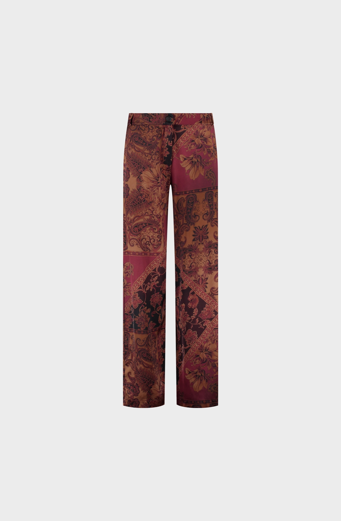 Productinformatie: De Anna Pants is een recht uitlopende broek. Het viscose materiaal heeft een licht glans. Het materiaal straalt pure elegantie uit dankzij de rijke paisleyprint in diepe bordeaux- en bruintinten. De broek heeft twee steekzakken en een ristsluiting. Materiaal: 100% Viscose