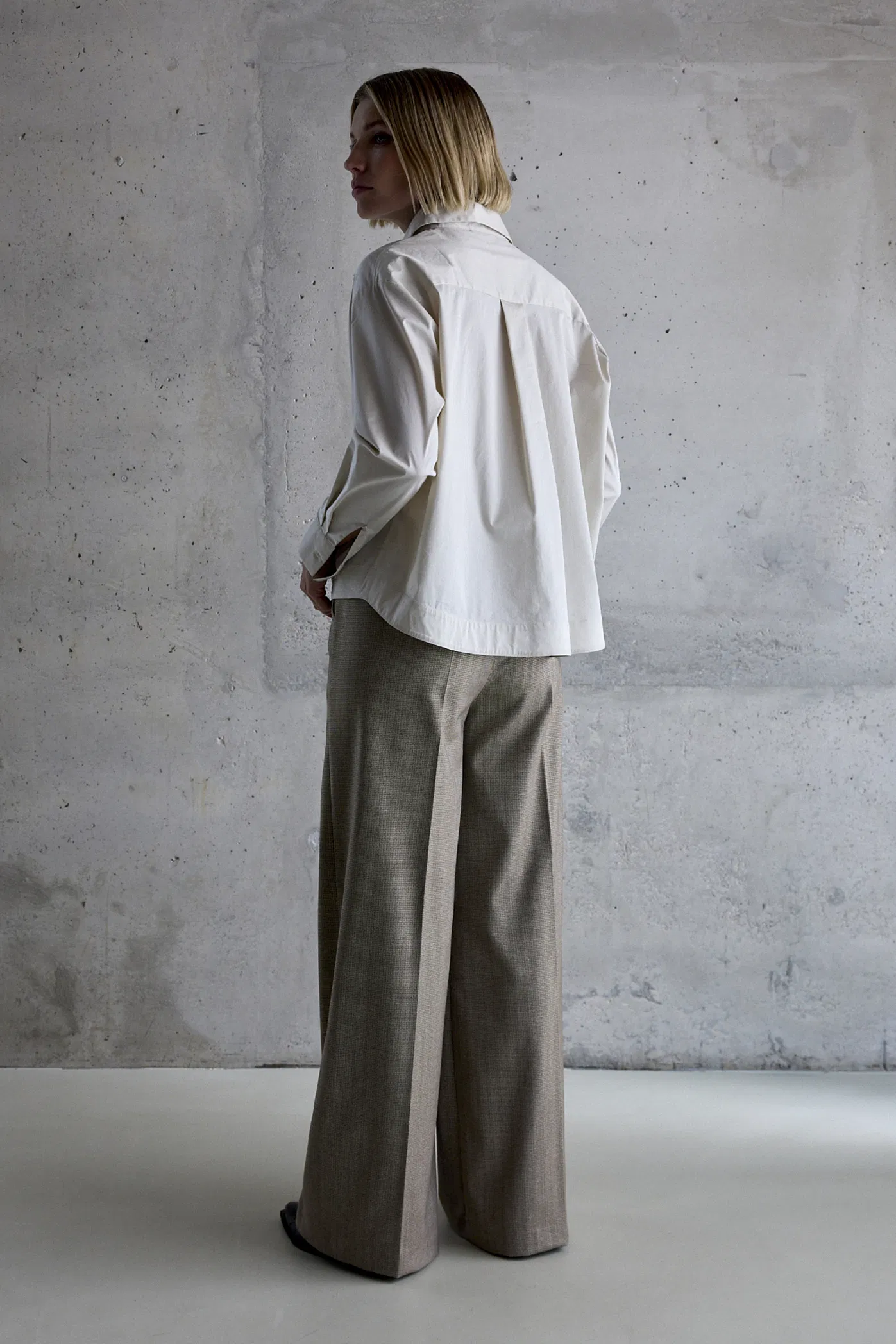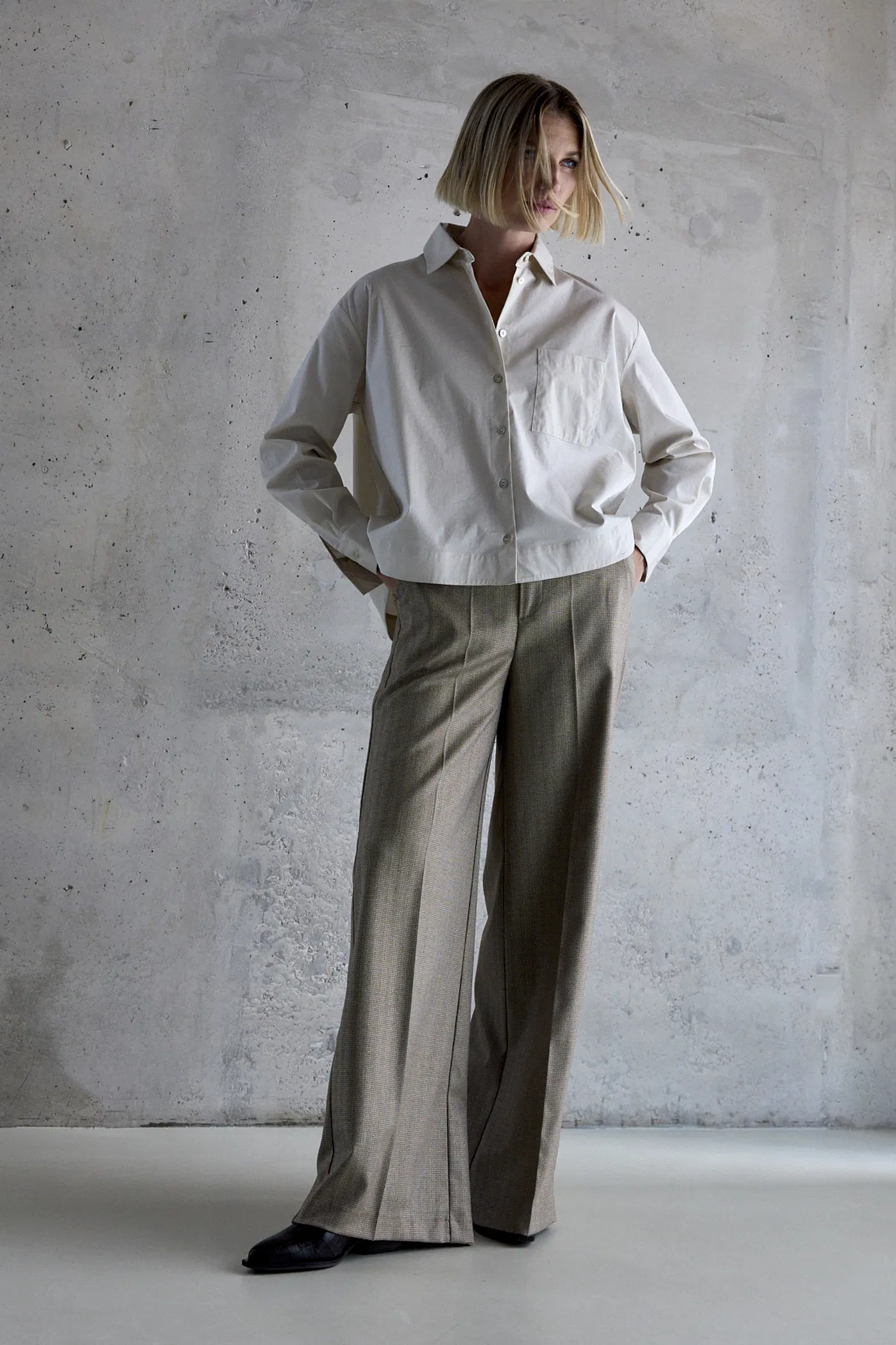Omschrijving: De broek Amore heeft een mooie glans door de subtiele lurex draad die is mee geweven. Met wijde pijpen en steekzakken is deze soepele broek zowel vrouwelijk als stoer te stylen.