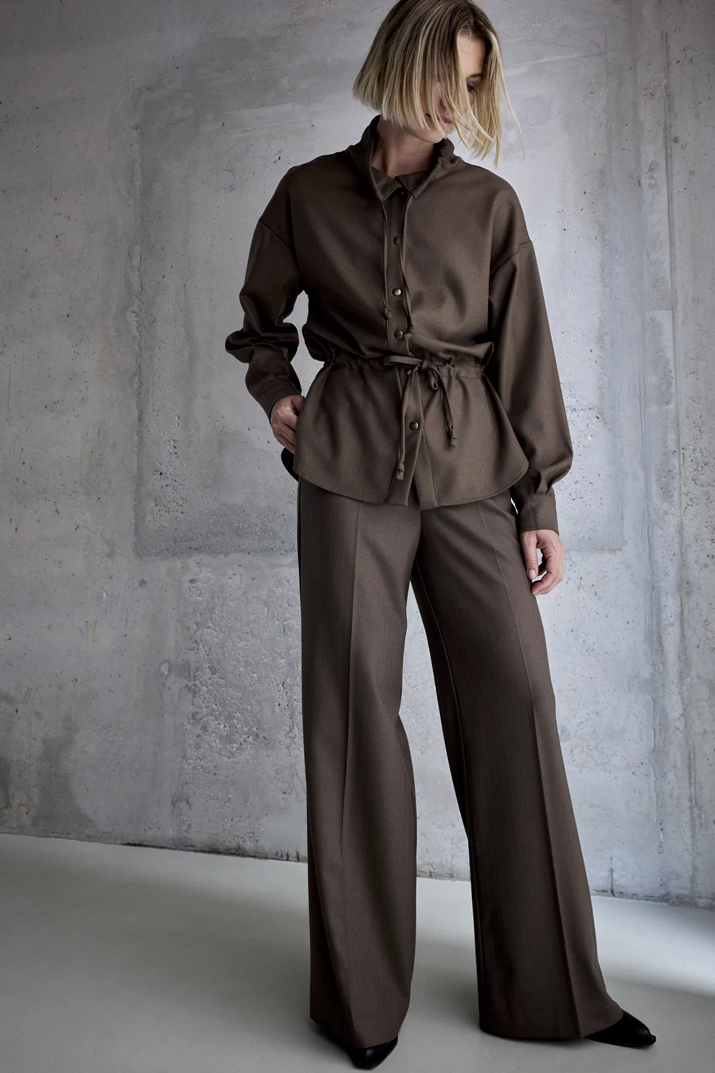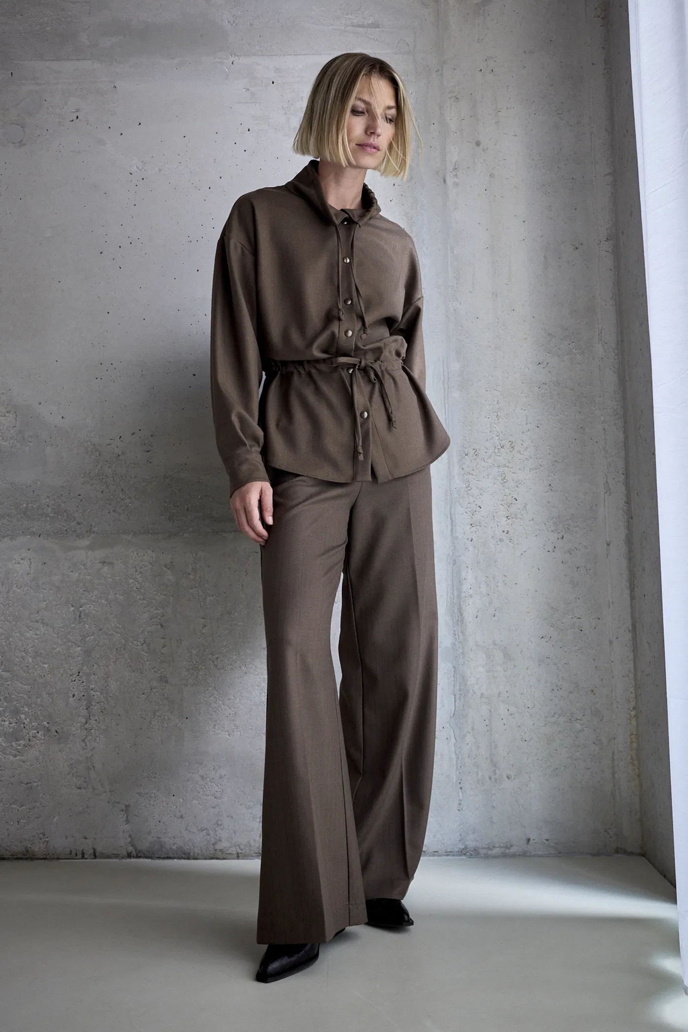 Omschrijving: Een heerlijk zachte broek met wijde rechte pijpen en een elastieken band. De broek heeft steekzakken en paspel zakken aan de achterzijde. Draag hier de bijpassende blouse Fanette bij voor een mooie co-ord set.