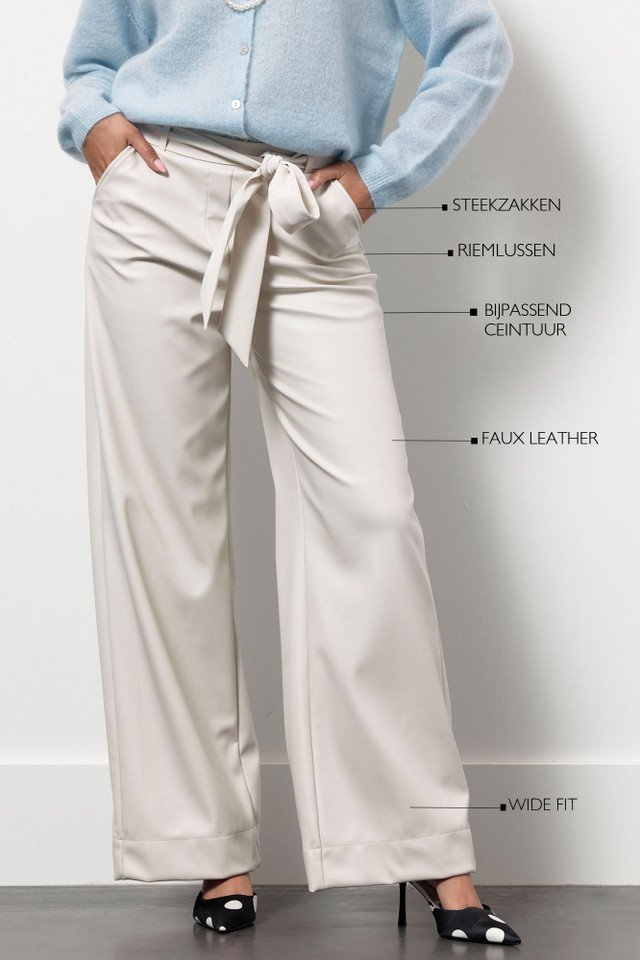 Omschrijving: De Lexie Faux leather trousers van Studio Anneloes is een stijlvolle combinatie van een stoere uitstraling en vrouwelijke elegantie. Dankzij de comfortabele fit en het bijpassende ceintuur kun je deze broek moeiteloos aanpassen aan jouw stijl. Ideaal voor wie houdt van een modieuze look met een zachte touch.
