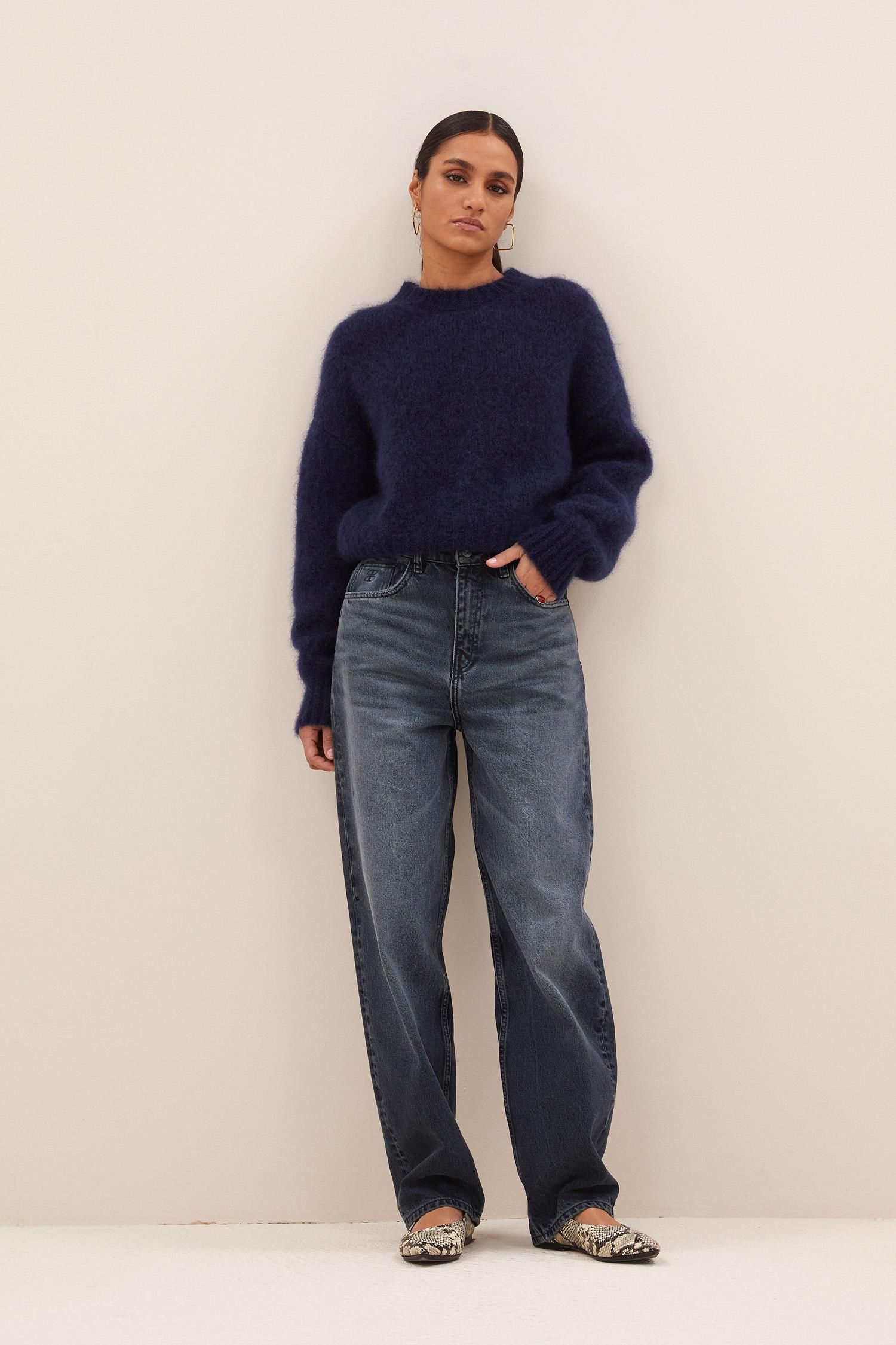 Omschrijving: Deze jeansbroek met hoge taille en rechte pasvorm biedt comfort en een flatterende fit. Hij is gemaakt van biologisch katoen met een duurzame wassing met vijf praktische zakken en een lange lengte. Dit is een veelzijdige must-have in je garderobe.