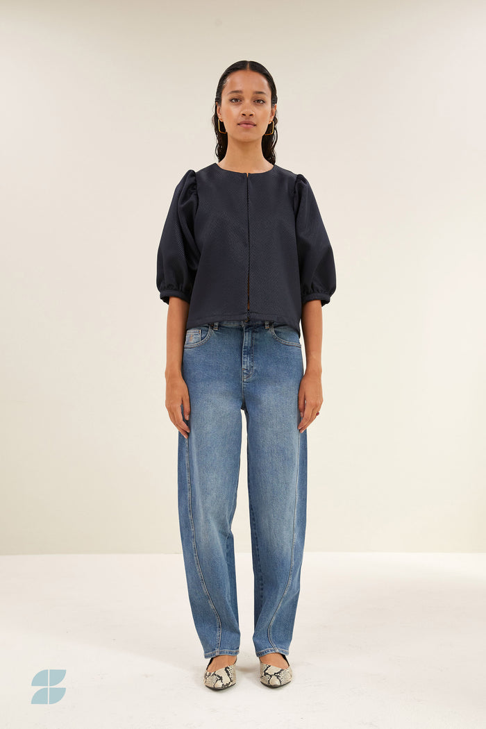 Ontdek de begum mid denim pants: een duurzame, casual broek met een losse pasvorm en middelhoge taille. Dankzij de enkellengte en vijf handige zakken combineer je comfort met stijl. Met een subtiel klein logo en een eenvoudige ritssluiting met knoop, is deze broek een veelzijdige must-have voor elke garderobe. perfect voor elke dag!