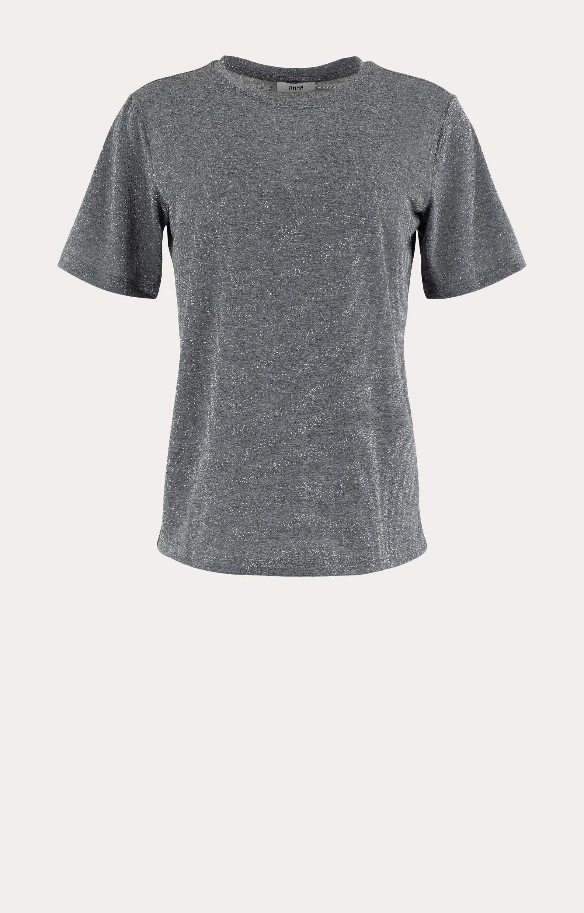 Dit mid grey T-shirt van Anna is een comfortabele keuze voor het winterseizoen. Het model heeft een ronde hals en korte mouwen, ideaal als laagje onder een vest of blazer. De toevoeging van lurex zorgt voor een subtiele glans in de stof. Dankzij de mix van viscose, polyamide en elastaan voelt het shirt zacht aan en biedt het een fijne stretch. Een basic met een vleugje extra.