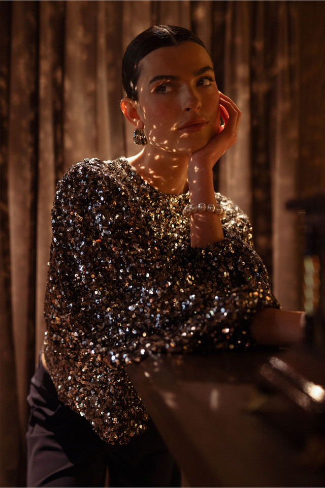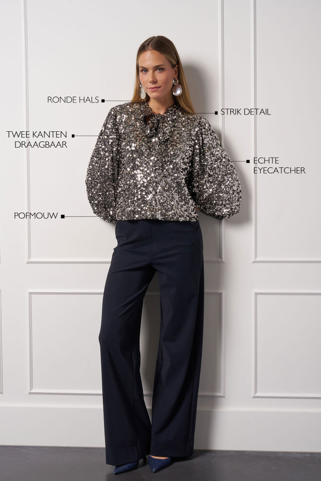 De Blom 2 way sequins top is een echte blikvanger. De glinsterende pailletten geven je look direct een feestelijke uitstraling, terwijl de soepele binnenkant zacht aanvoelt op de huid. De pofmouwen zorgen voor extra volume en een vrouwelijke touch. Dankzij de comfortabele pasvorm blijft de top de hele dag en avond prettig zitten.