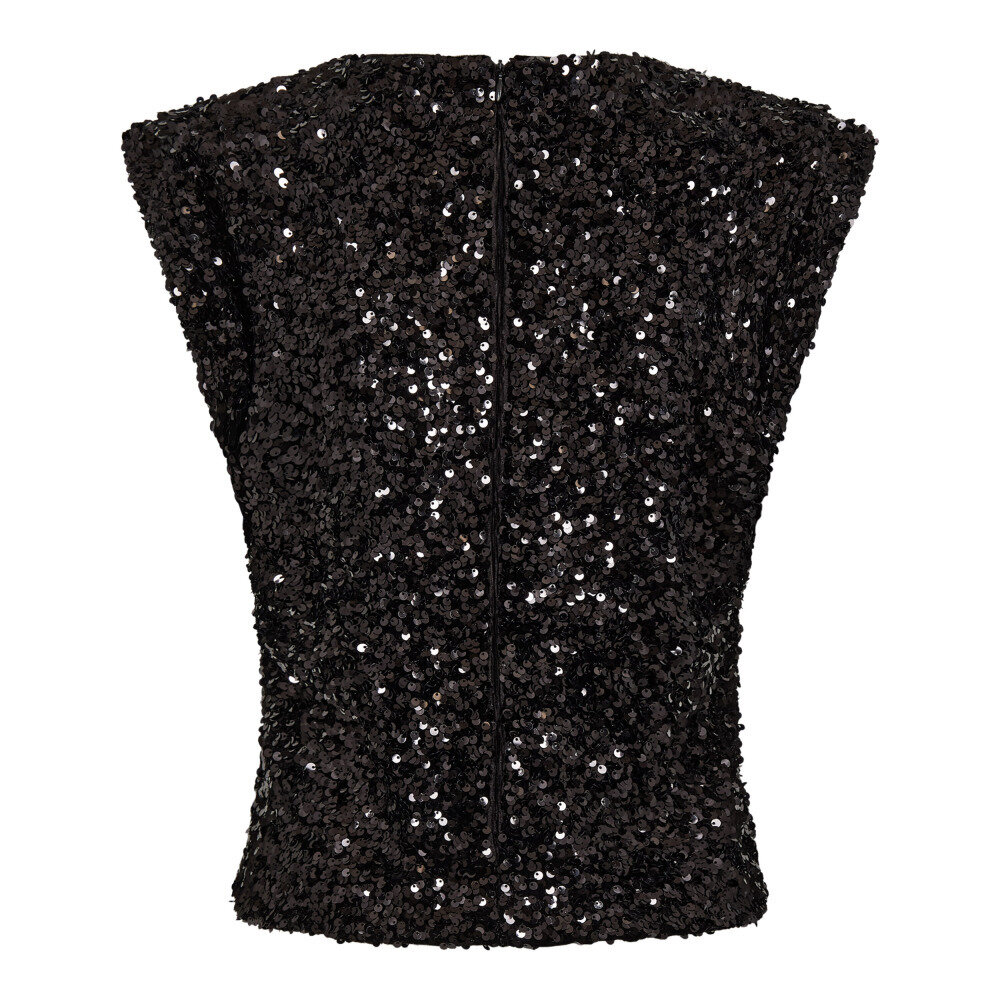 Omschrijving: Zwarte mouwloze top met pailletjes en ritssluiting achter