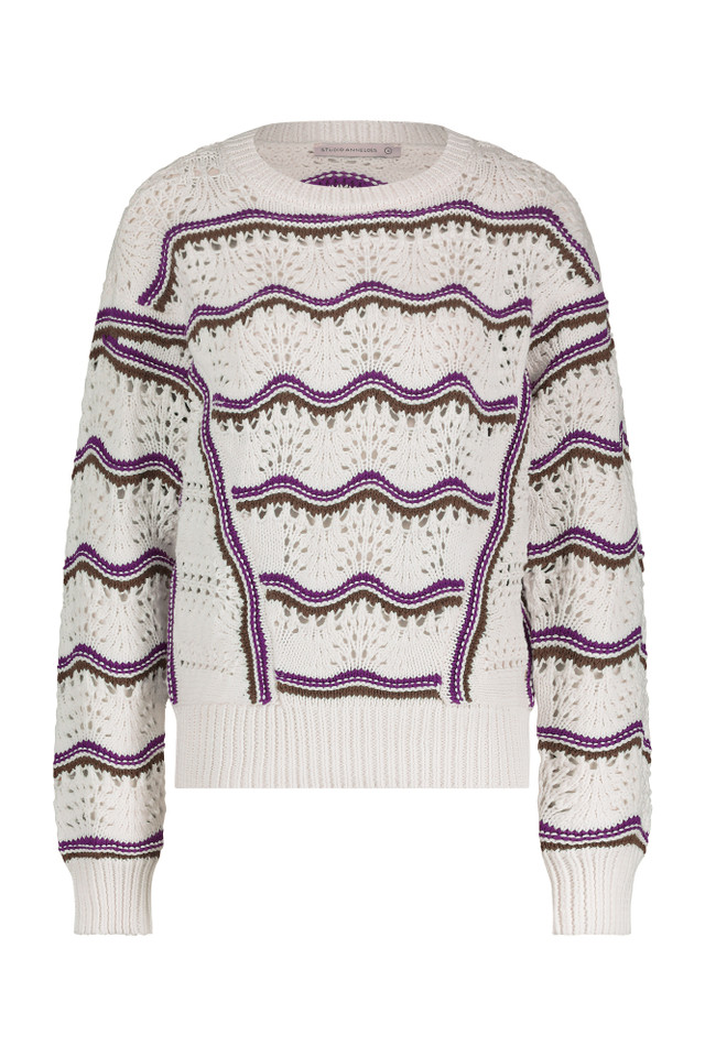 Omschrijving: De Leana ajour pullover van Studio Anneloes is gemaakt met de statement kleuren van de Déjà Vu-collectie. Daardoor is Leana perfect te combineren met de Purper en Earth kleurige items. Deze knit is licht doorschijnend. Het heeft een regular-fit pasvorm, lange mouwen met cuffs in een zachte, niet kriebelende stof.