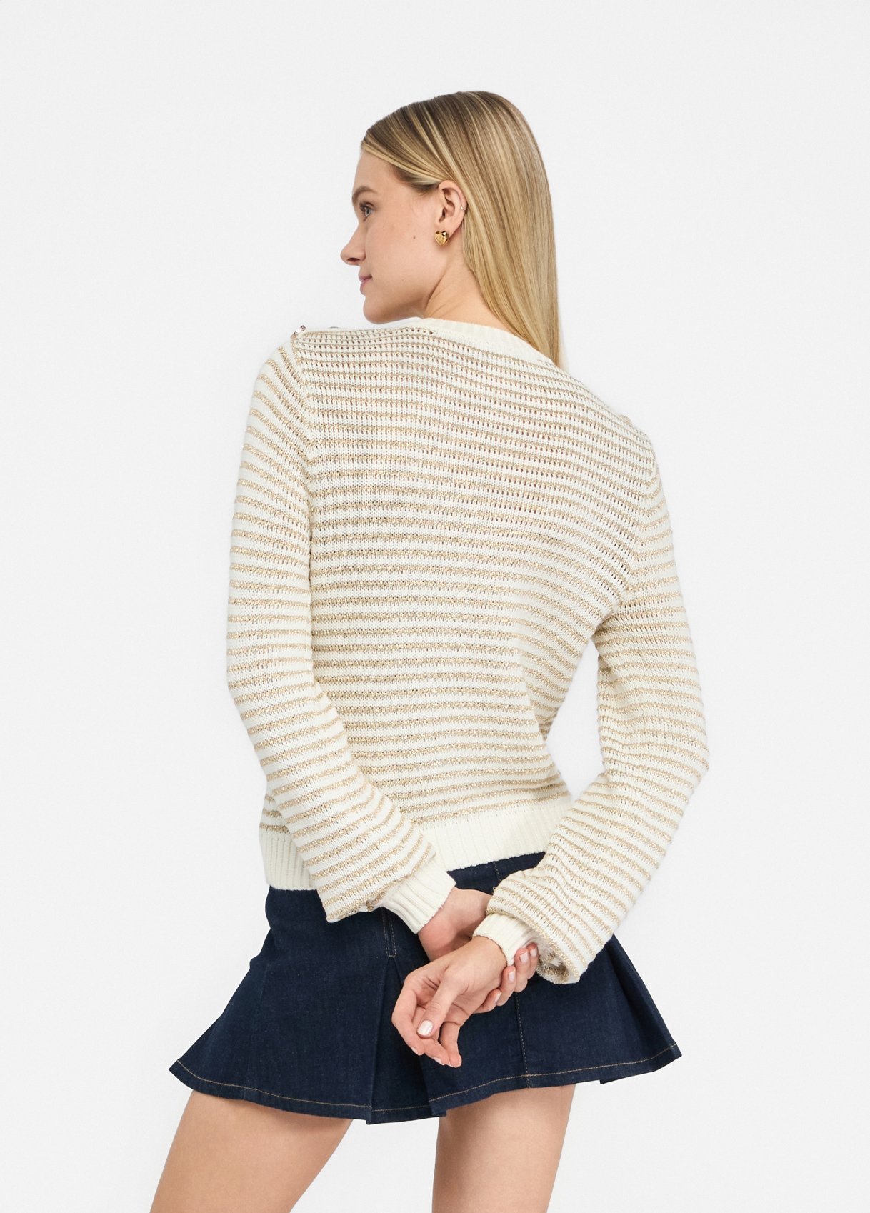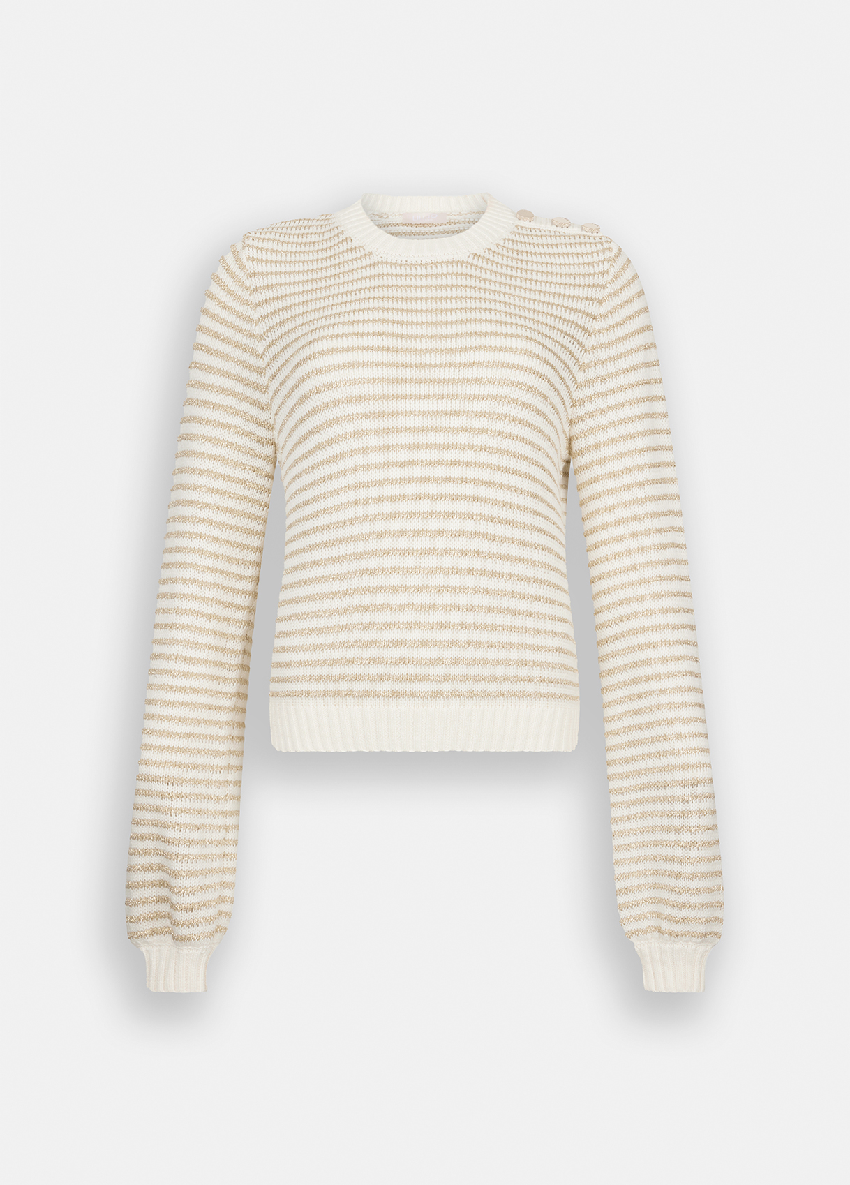 Trui van Lurex® en wolmix Gestreept motief Knopen op de schouder Ronde hals Lange mouwen Geribbelde boorden