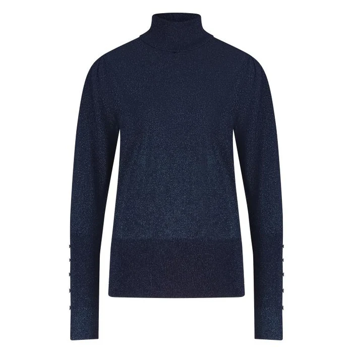 Deze pullover met lurex is een elegante coltrui met fijne lurex draad en stijlvolle knoopdetails aan de mouwen. Deze lichtglanze trui is een veelzijdige must-have voor elke garderobe.