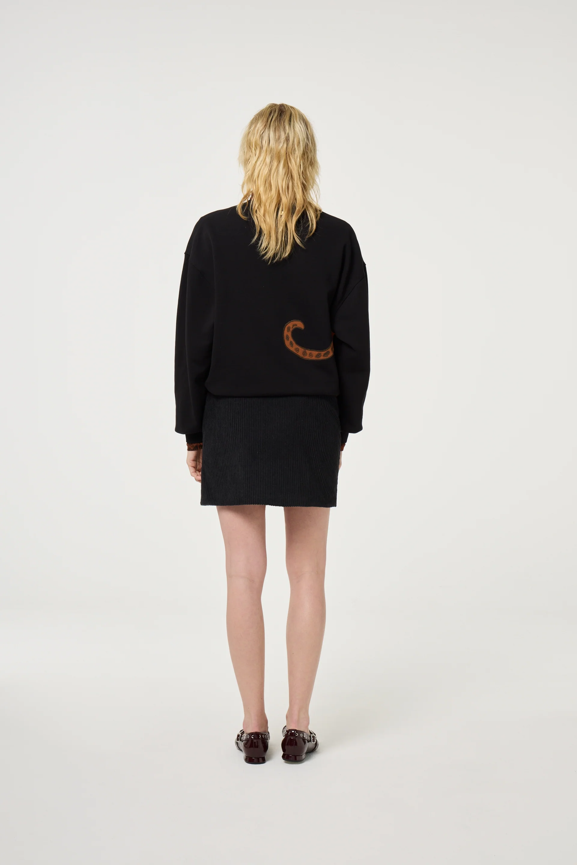 Deze zwarte trui is gemaakt van 100% biologisch katoen en heeft een opvallend groot luipaardmotief op de voorkant. Dankzij het zachte, duurzame materiaal draagt hij comfortabel en stijlvol. Combineer de trui met een zwarte broek voor een elegante outfit.