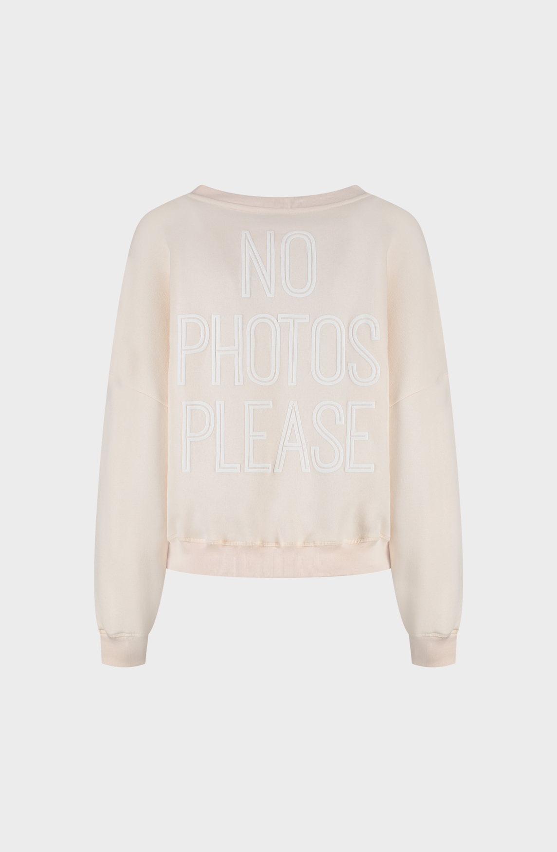 Maat: Oversized pasvorm. Wij adviseren om uw eigen maat te nemen. Productinformatie: De No Photo Please Trui is heerlijk zacht. De trui valt ruim en zit heerlijk. De halslijn is aangeloten. Op de achterkant is de tekst 'No Photo Please' te zien. Dit geeft de sweater natuurlijk wel een extra leuke touch. Materiaal: 100% Katoen