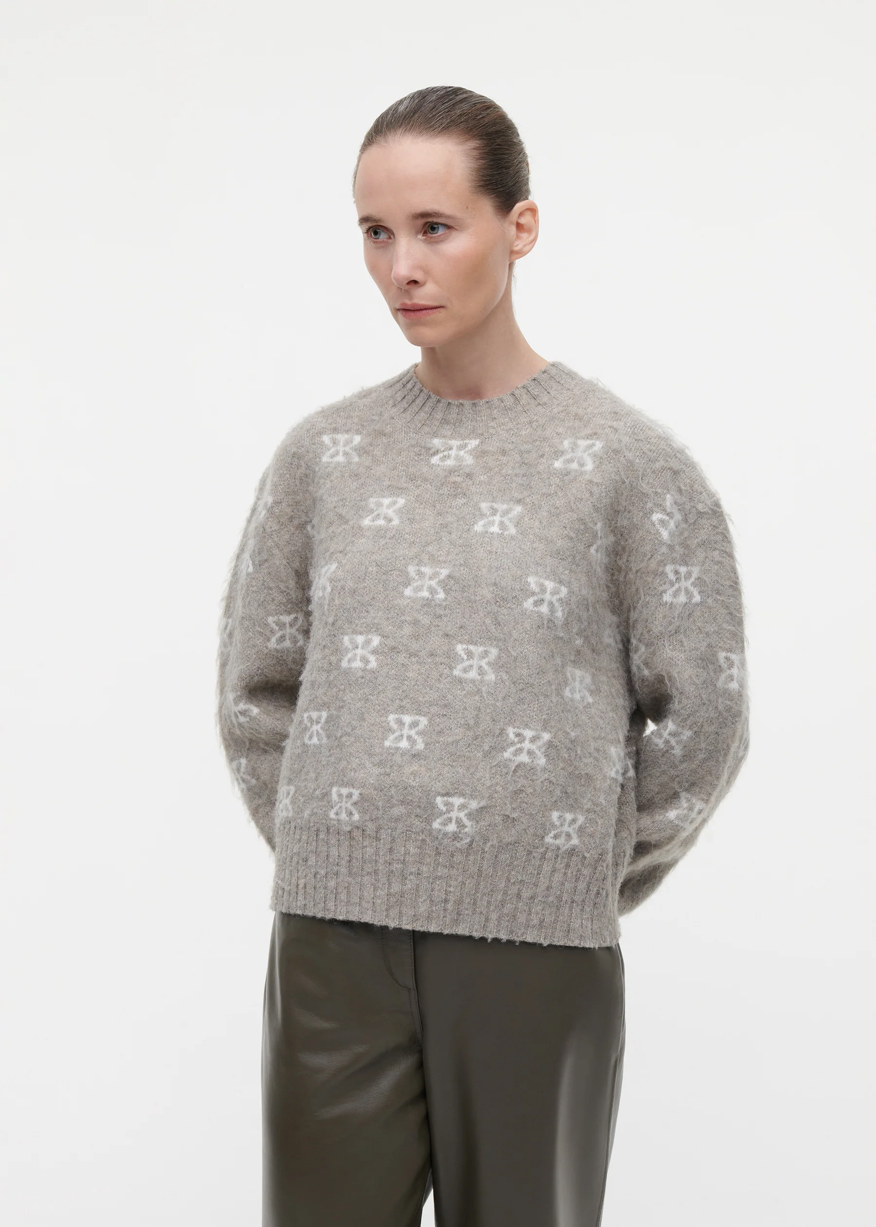 De ALYSSA Brushed LOGOKnit is gemaakt van een zachte, geborstelde gebreide stof. Dit comfortabele item heeft een all-over patroon van kleine STUDIO AR-logo's voor een speelse maar verfijnde look. Met zijn relaxte pasvorm en opvallende textuur is de ALYSSA Brushed Knit perfect om je dagelijkse garderobe een persoonlijk tintje te geven.