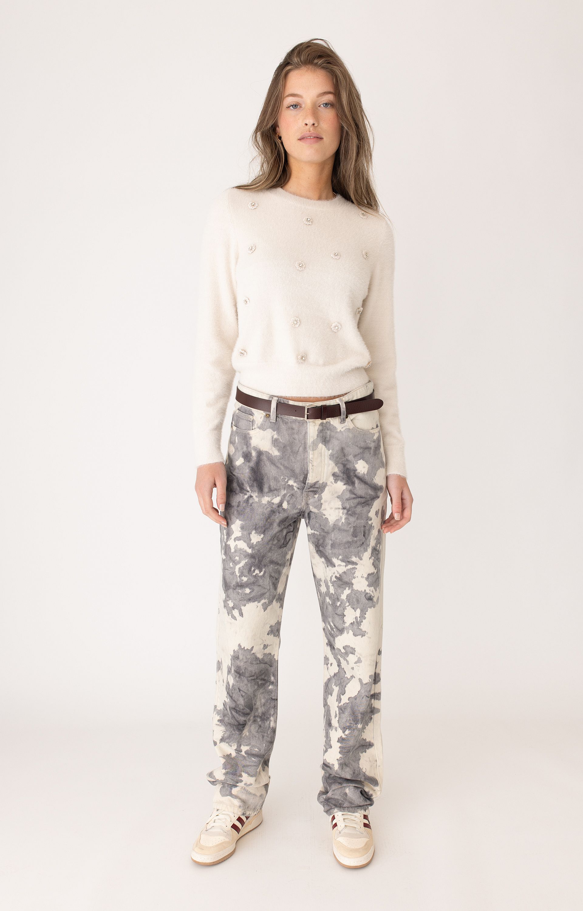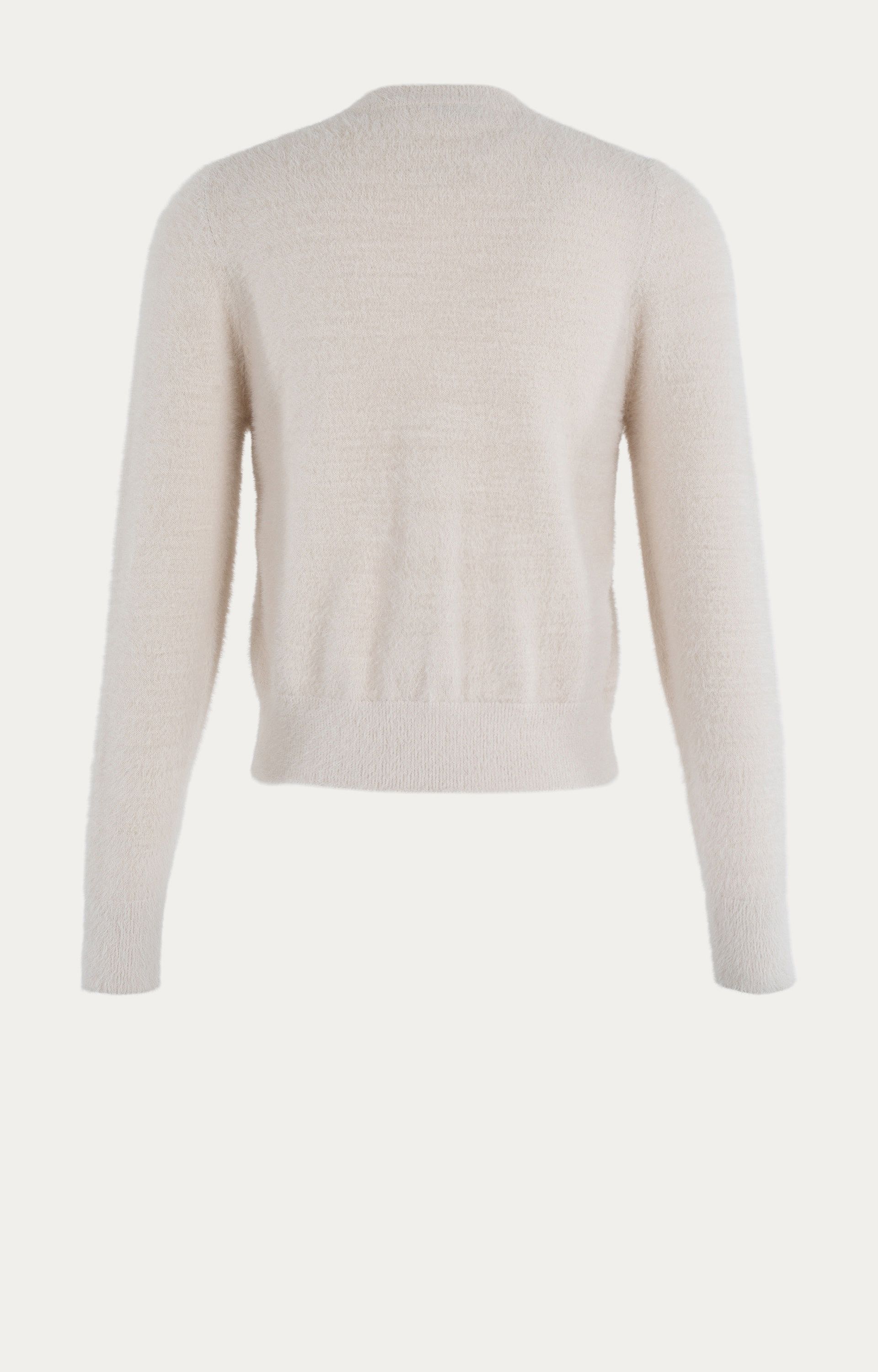 Details: Harige structuur, bloemetjesapplicaties met strass steentje, ronde hals