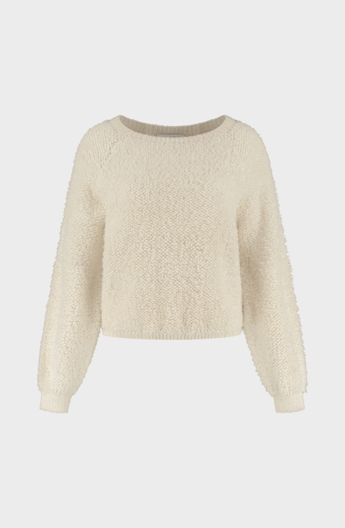 Omschrijving: Een heerlijke zachte trui, onze Jessie Knitwear. Het witte materiaal van katoen en ramine is heerlijk zacht en fluffy. De trui valt mooi en is heerlijk warm. Wat wij heel leuk vinden is het fluffy van de trui te combineren met het stoere lak materiaal van de Loua Pants. Tegenstellingen trekken elkaar aan.