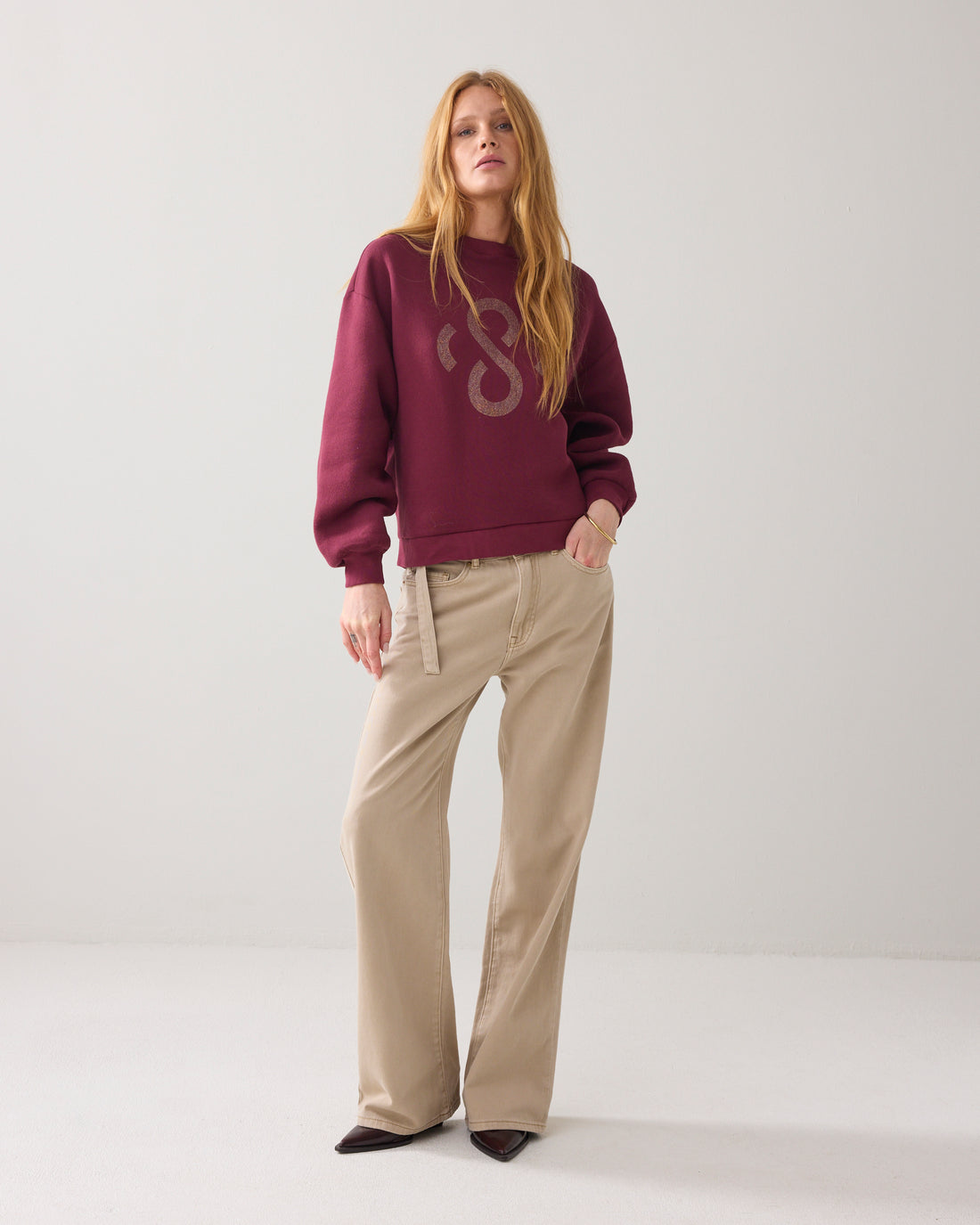 Omschrijving: Zachte sweater met een casual fit. De voorkant is versierd met een ton-sur-ton Summum-logo in een rubberachtige glimmende print. De sweater heeft een ronde hals en lange mouwen.