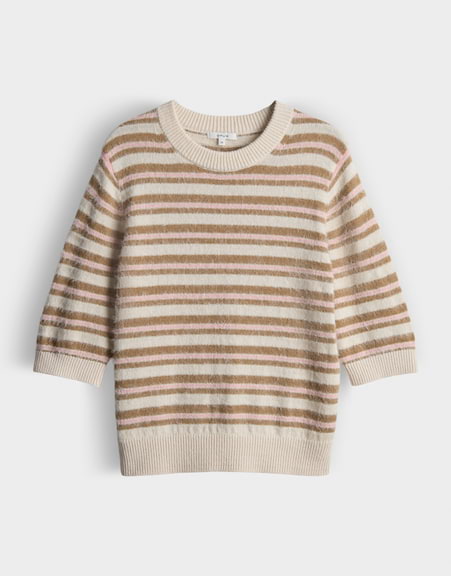 Omschrijving: Veelkleurige strepen en een behaaglijk, harig oppervlak maken van deze trui de blikvanger van het seizoen. De opvallende, eenkleurige gebreide boorden voegen een sportief accent toe.