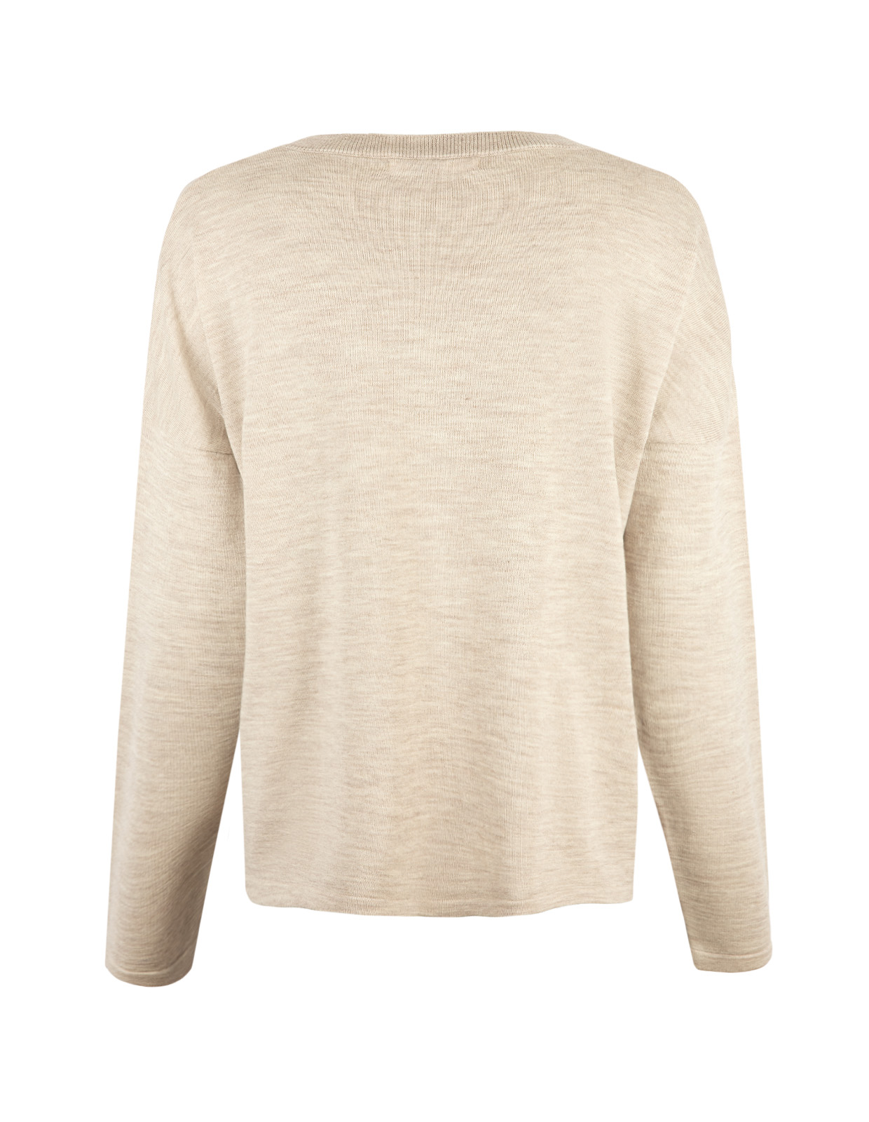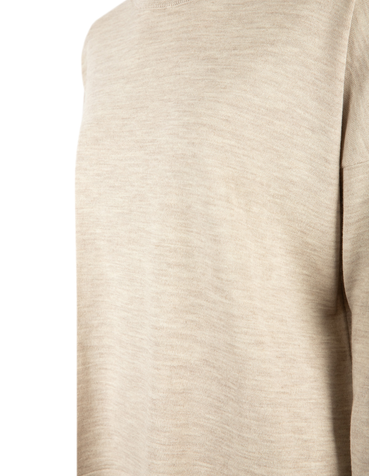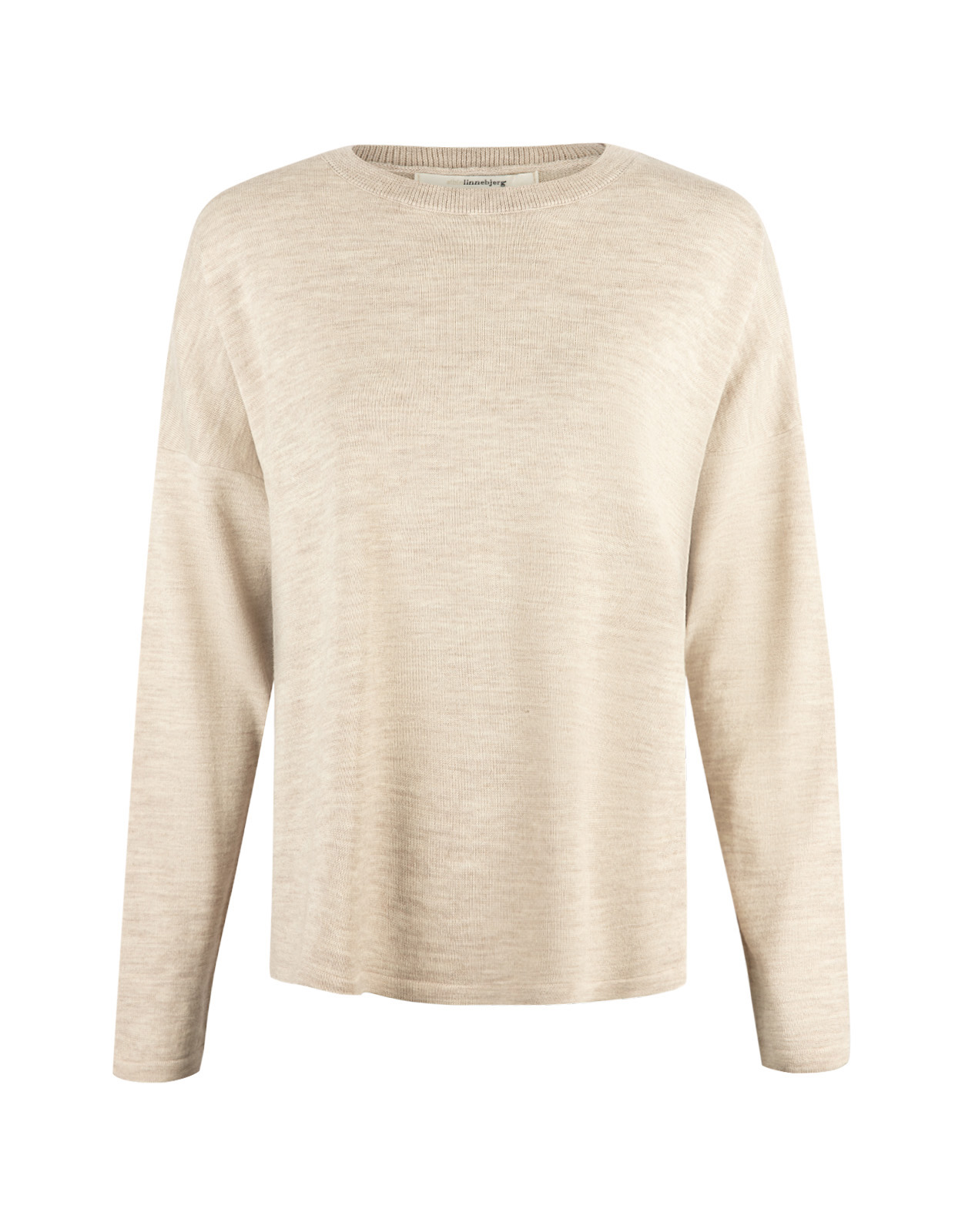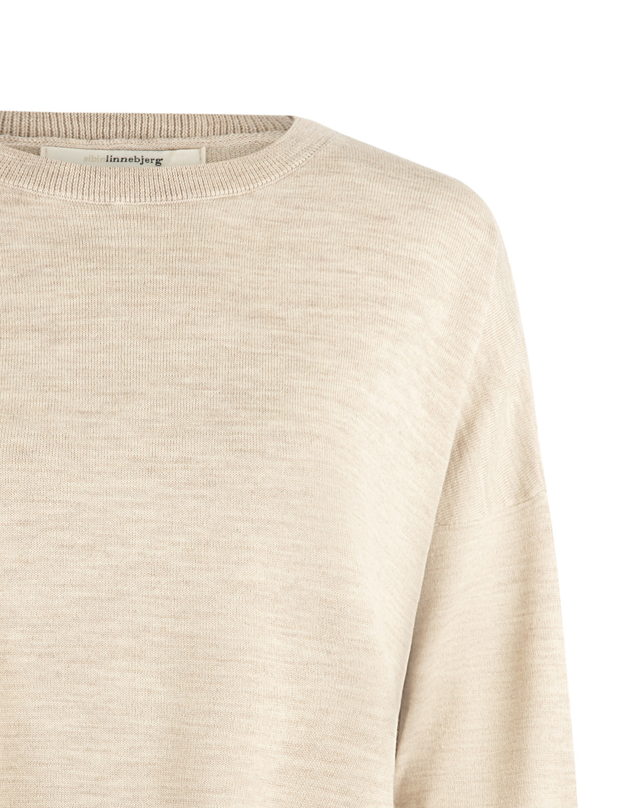 Omschrijving: Alice is een trui met ronde hals van Sibinlinnebjerg, gemaakt van 100% merinowol. Het model heeft smalle mouwen en een oversized model, wat de trui een trendy uitstraling geeft.