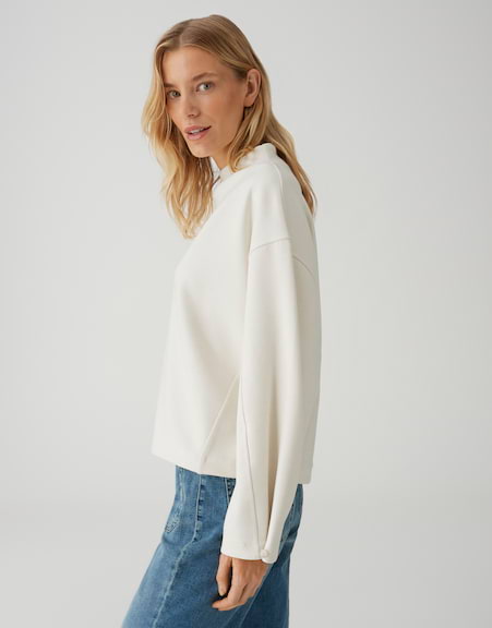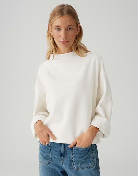Omschrijving: Het zacht geborstelde GARIANE sweatshirt met een fluweelachtig gevoel heeft wijd gesneden mouwen. Dankzij de geraffineerde snit kunnen de mouwen flexibel gedragen worden: losjes open, omgeslagen of taps toelopend, deze trui is een echt stylingwonder met een allround comfortabel sweatshirtgevoel.