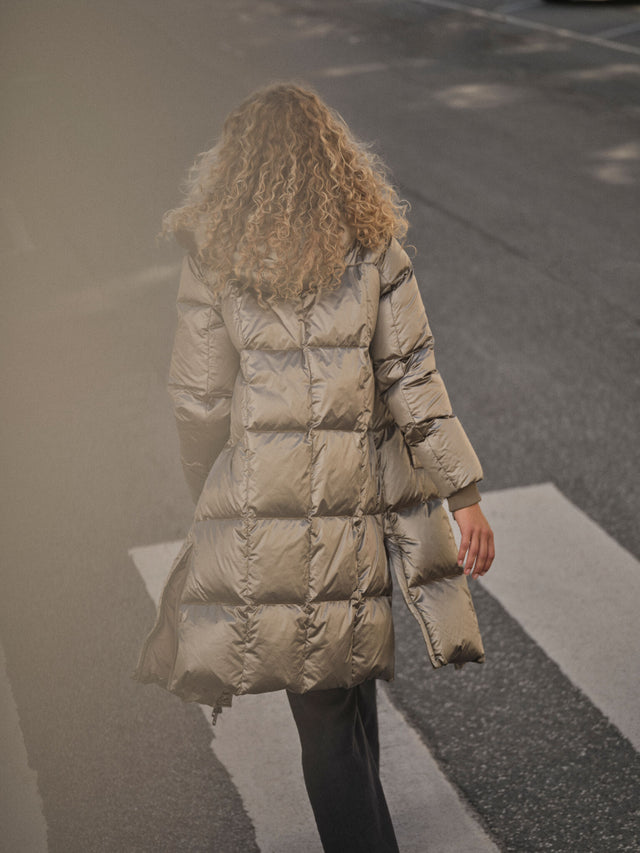 Omschrijving: Deze superlichte donsjas houdt je warm in de ijzige kou. De Nova jas is gemaakt van een cool metallic stof en heeft een lange pasvorm en een stevige rits en is afgewerkt met een hoge, praktische kraag en zijsplitten, waardoor de pasvorm extra flexibel is.