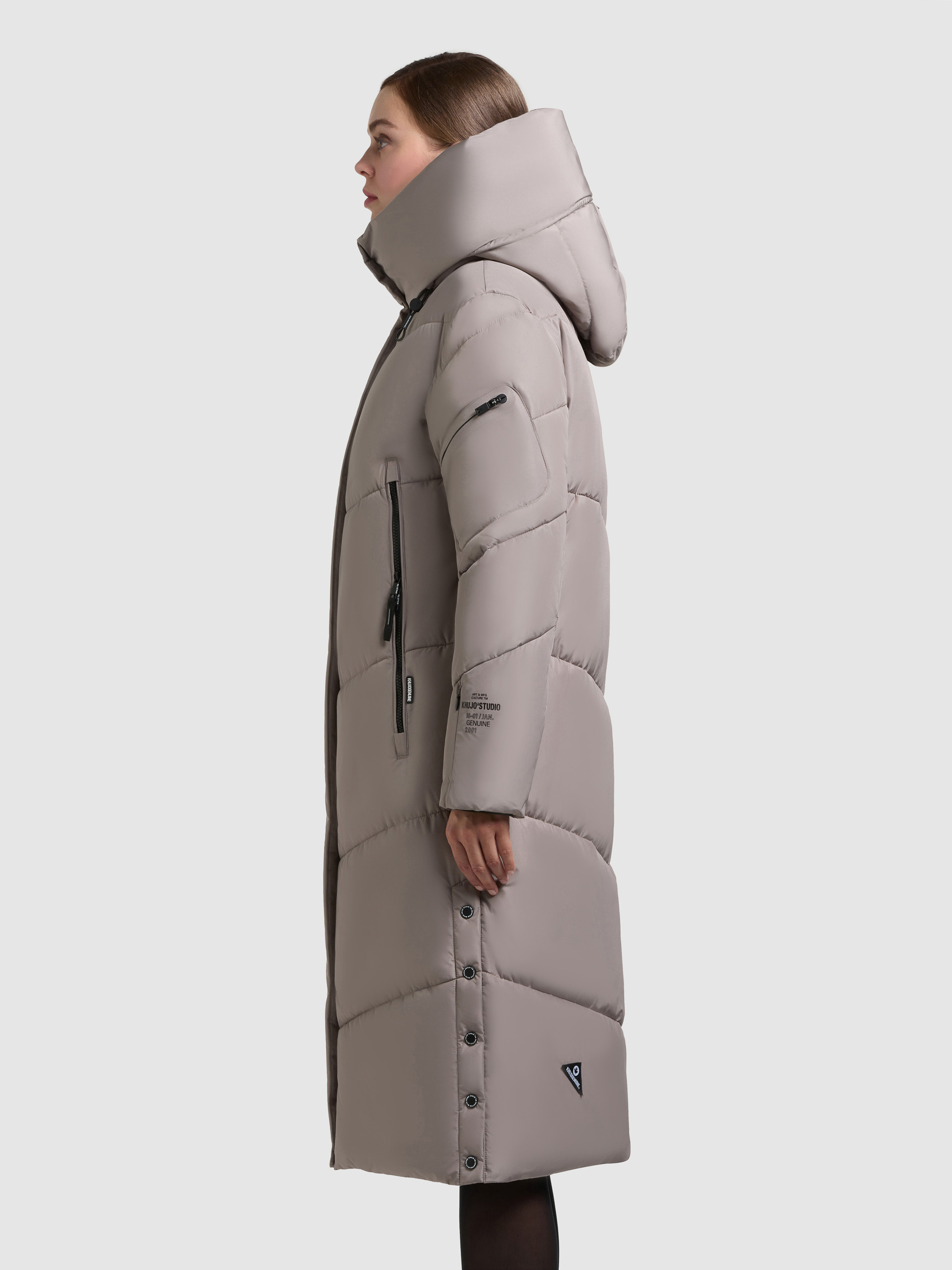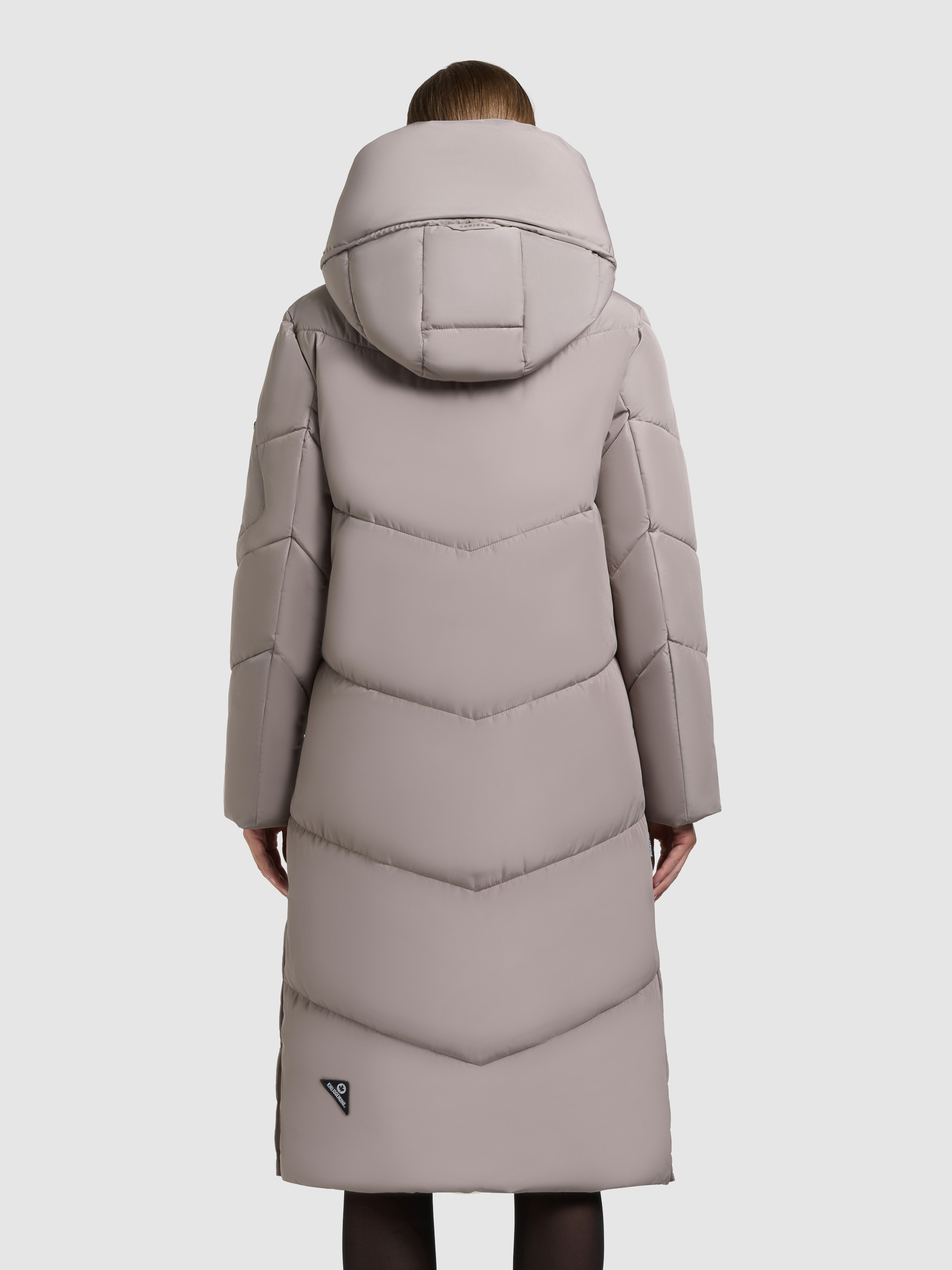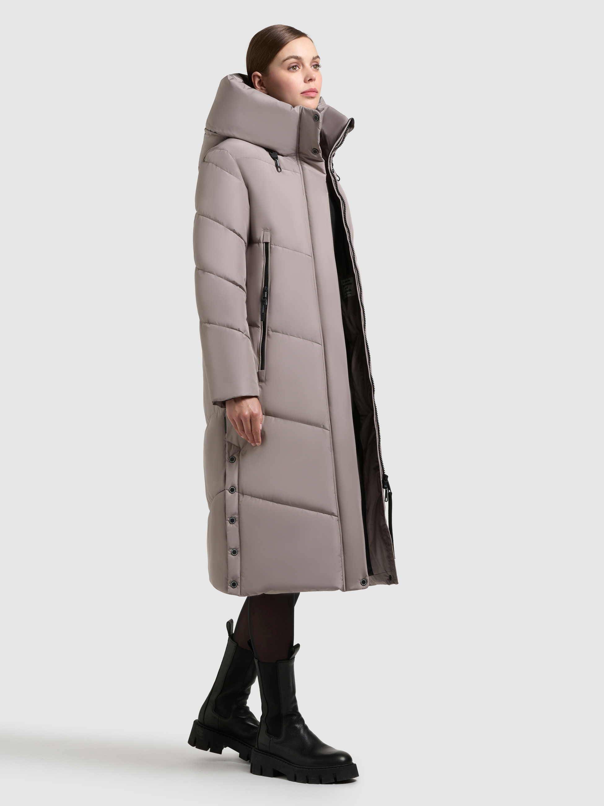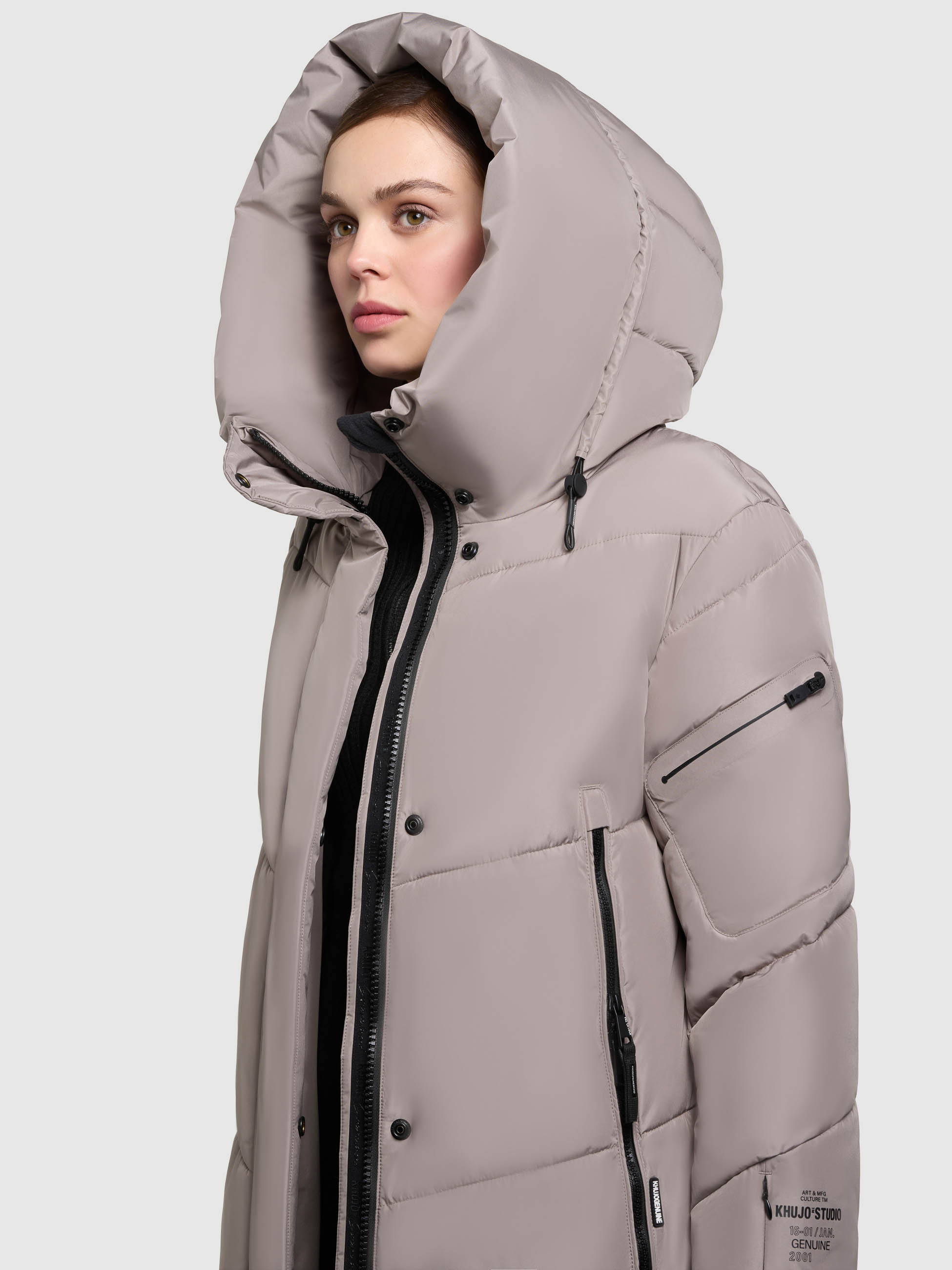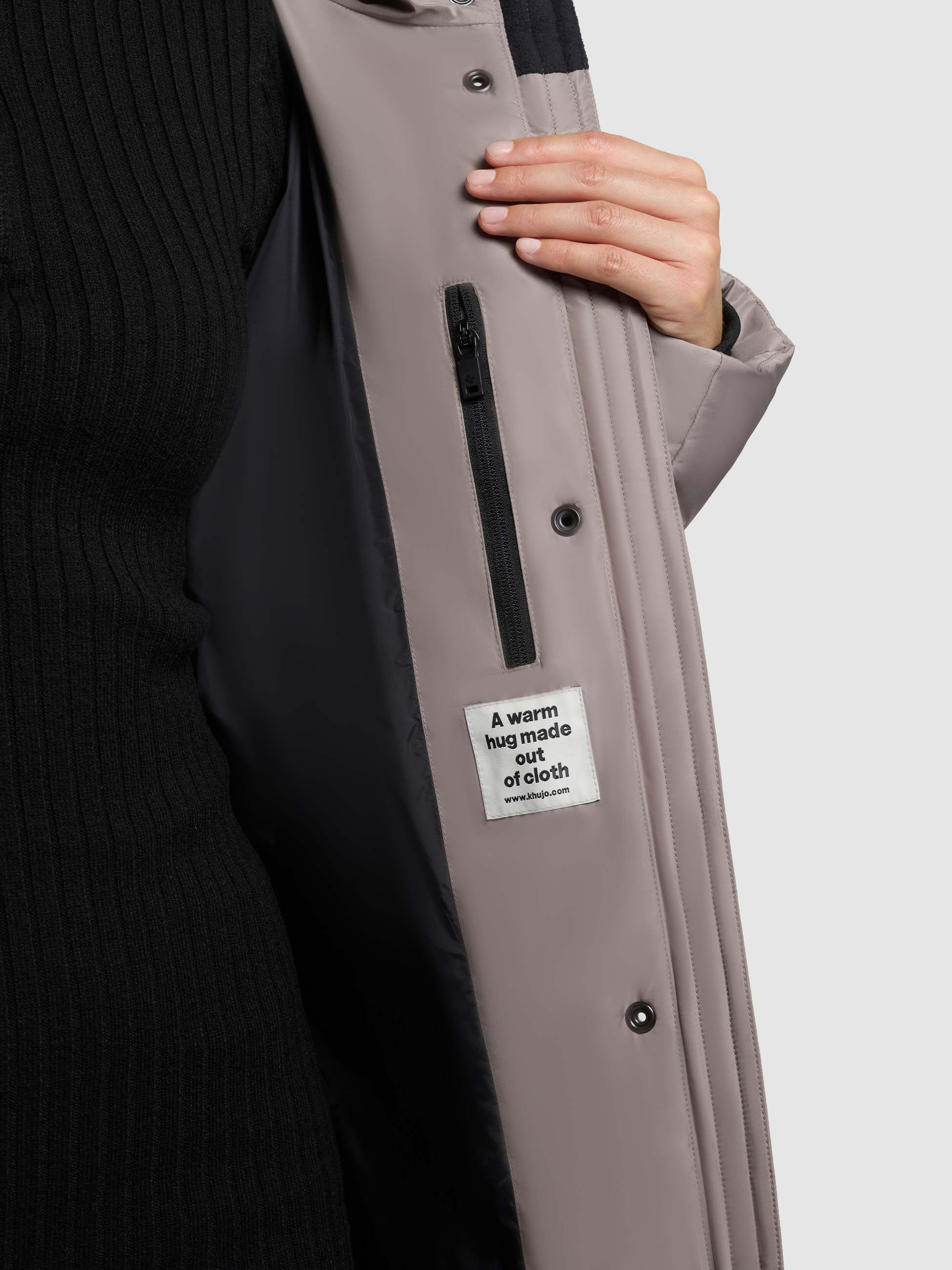 Omschrijving: LIKE A WARM HUG: dat is het motto van de khujo PULSET MATT jas. Dankzij een verstelbare, hoogsluitende capuchon, elastische manchetten aan de mouwvoering en zijsplitten aan de zoom biedt deze warm gewatteerde gewatteerde jas betrouwbare bescherming tegen koud winterweer. De windflap met drukknopen, de kinbescherming bij de tweewegrits en de grote, met fleece gevoerde zakken met rits tonen de passie voor detail van deze knielange winterjas verder aan.