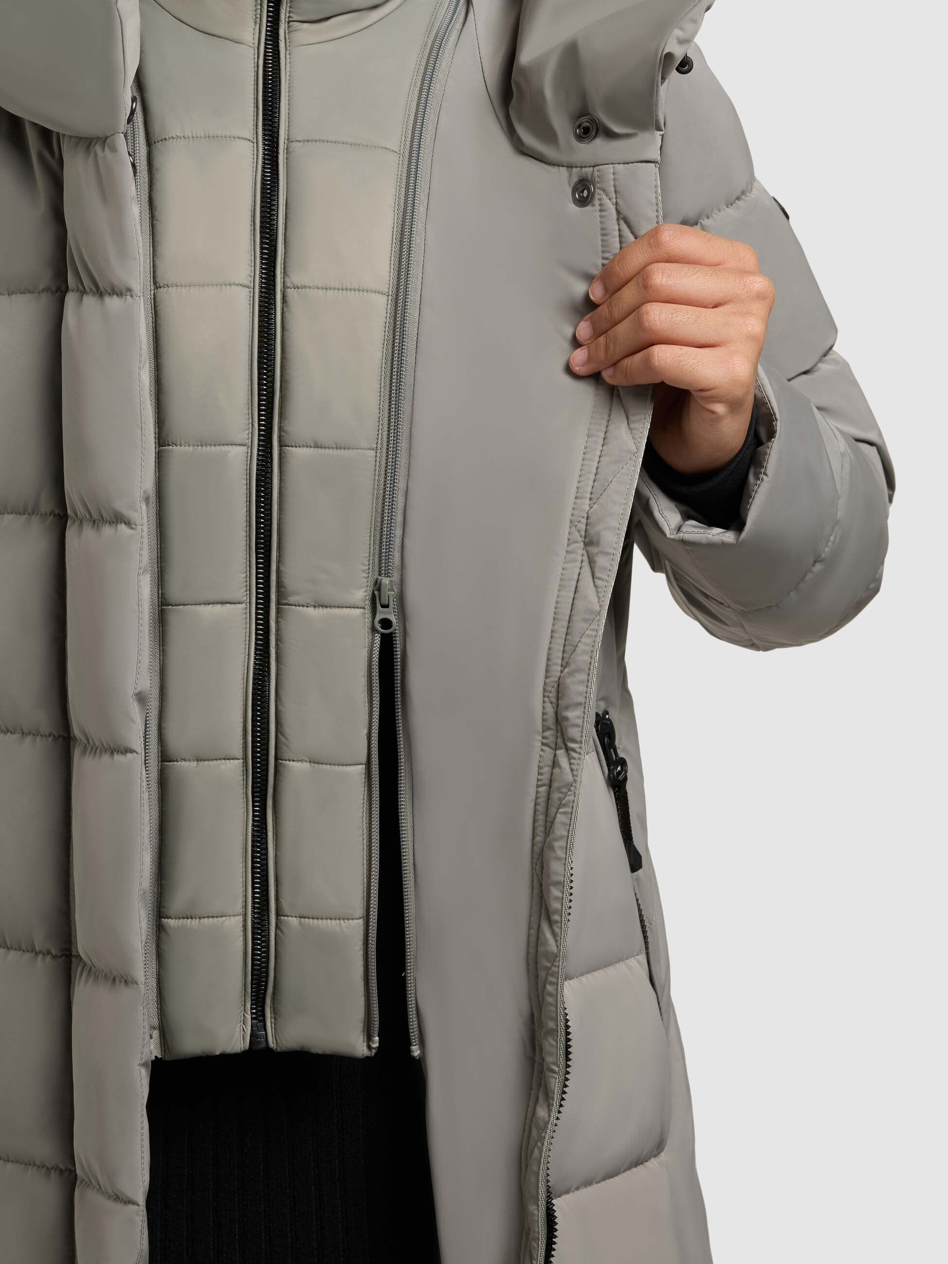 Omschrijving: De Khujo TAMKE jas is optimaal aan te passen aan het weer dankzij de gewatteerde en uitneembare inzet met opstaande kraag. De gewatteerde jas heeft ook een grote, hoogsluitende capuchon en elastische manchetten aan de mouwvoering. Je kunt je essentials opbergen in een binnenzak en fleecegevoerde zakken met rits. Een tweewegrits met windflap en magneetsluiting, een capuchon met trekkoord en prinsessennaden maken deze winterjas compleet.