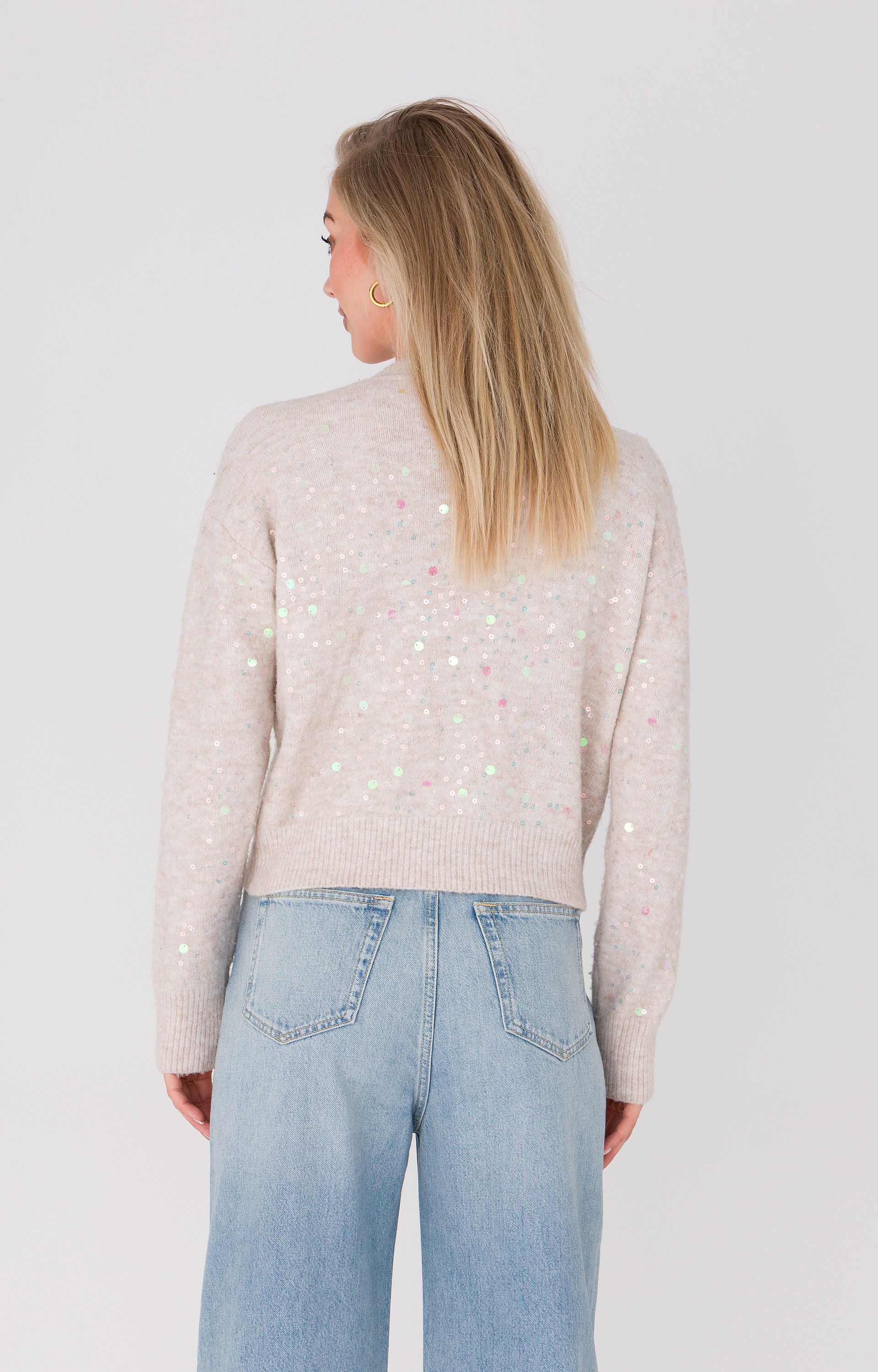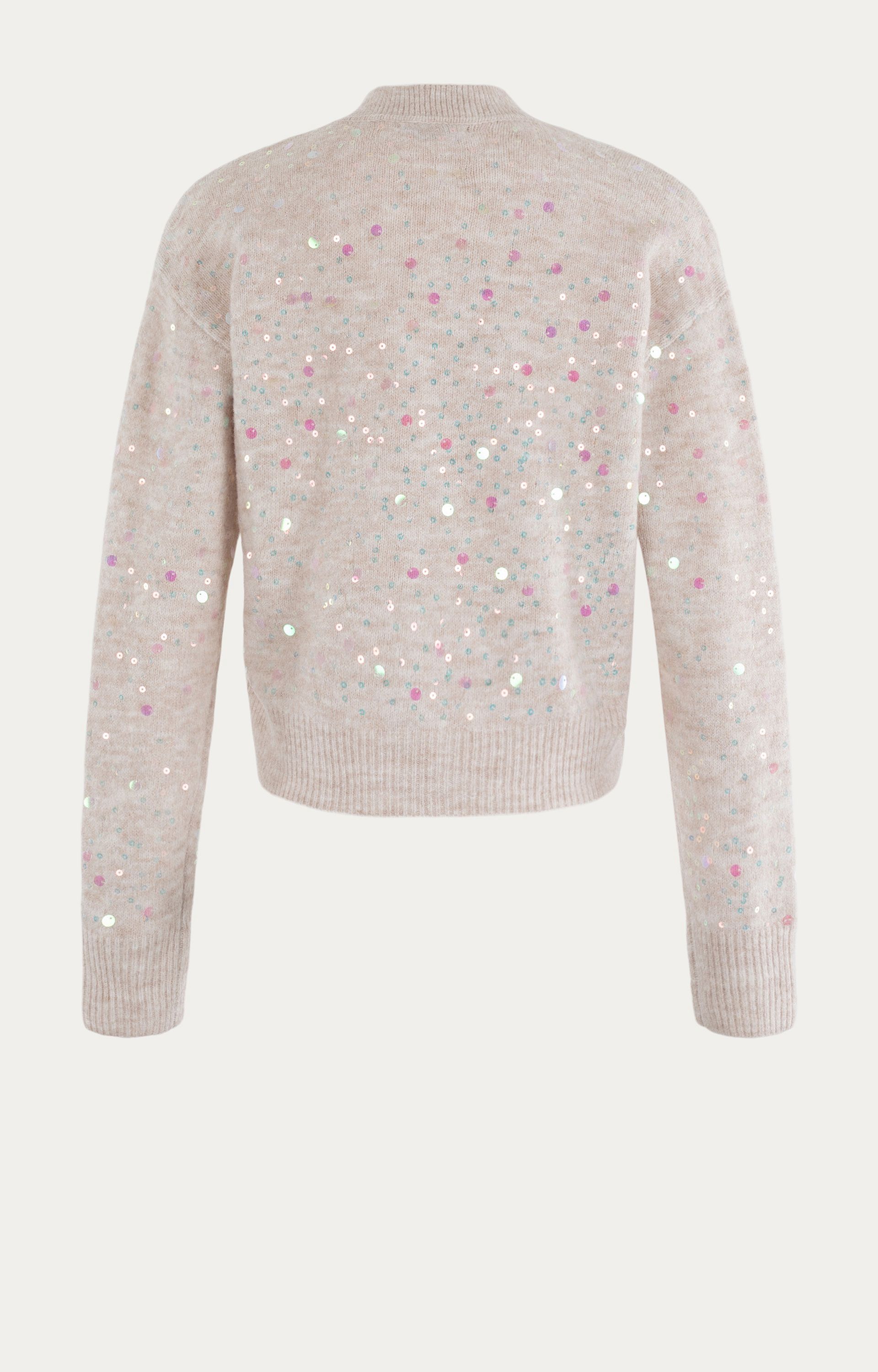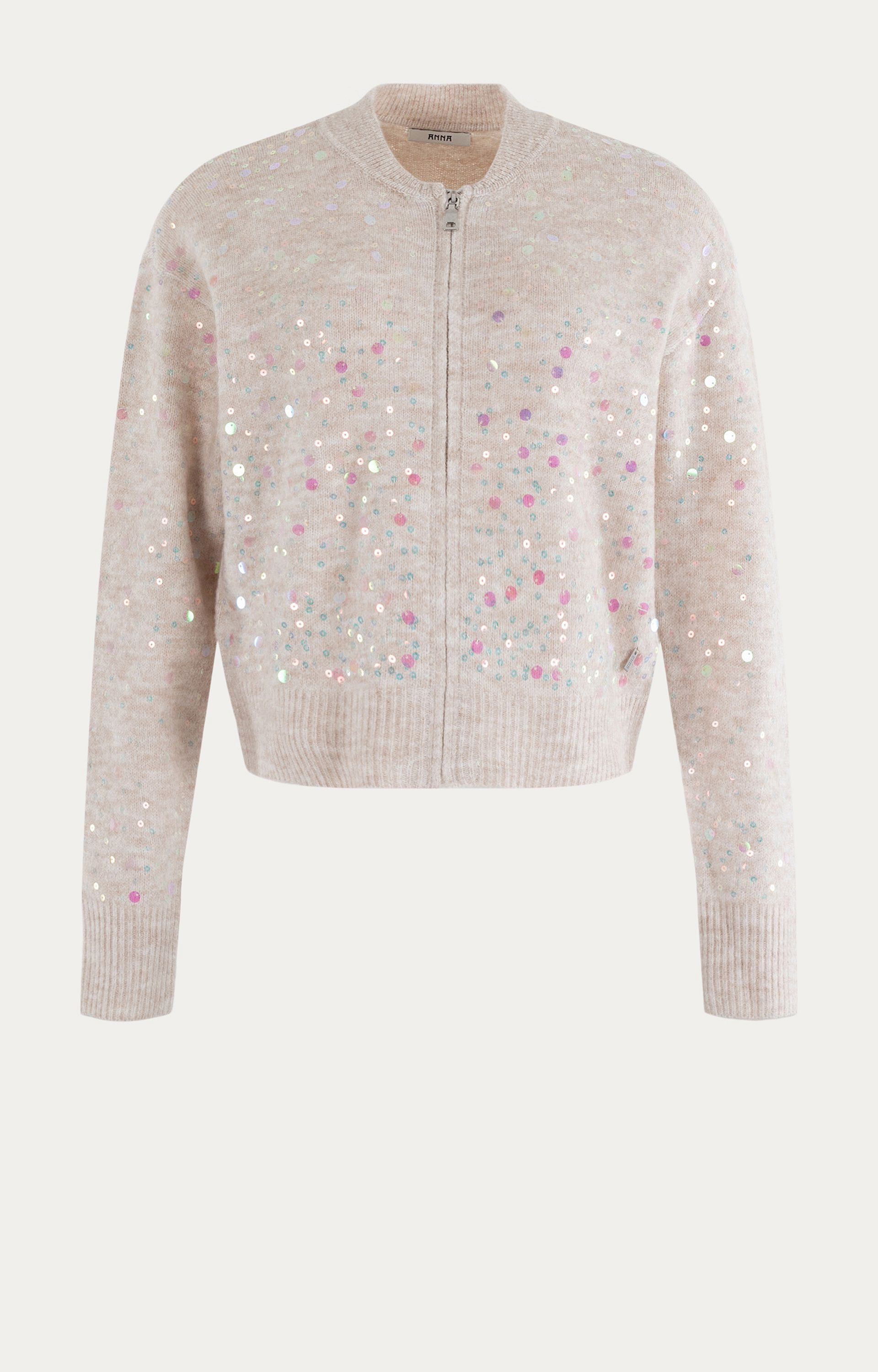 Omschrijving: Deze cardigan van Anna is een echte blikvanger voor het winterseizoen. Het model is uitgevoerd in een zachte mix met glanzende pailletten die subtiel licht vangen en zorgen voor een feestelijke uitstraling. De beige basis maakt dit vest makkelijk te combineren, terwijl de ritssluiting en ribboorden zorgen voor een comfortabele pasvorm. Perfect om zowel casual als bij een feestelijke outfit te dragen.