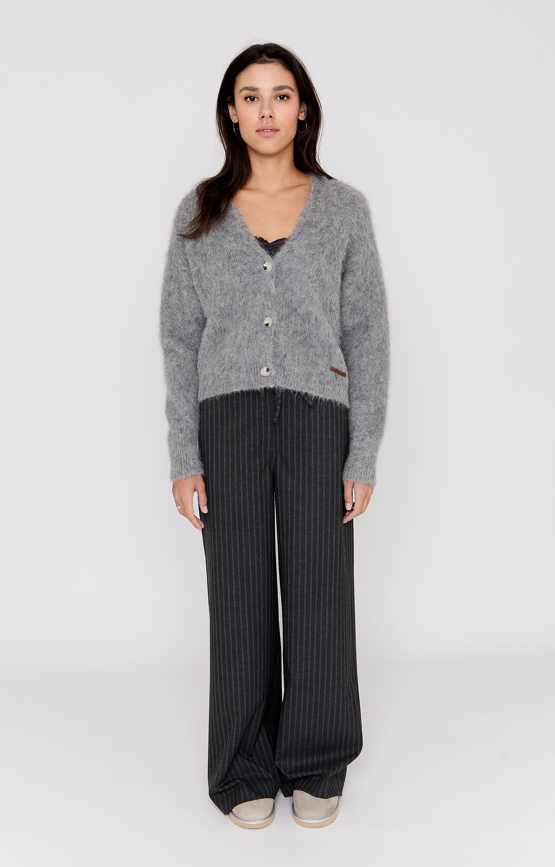 Omschrijving: Dit mid grey vest van Moscow is perfect voor het winterseizoen dankzij de warme en zachte mix van alpaca, polyamide en elastaan. Het model heeft een V-hals, lange mouwen en een klassieke knoopsluiting. De harige structuur van de stof zorgt voor extra warmte en een comfortabel gevoel. Ideaal om over een top of jurk te dragen op koude dagen.