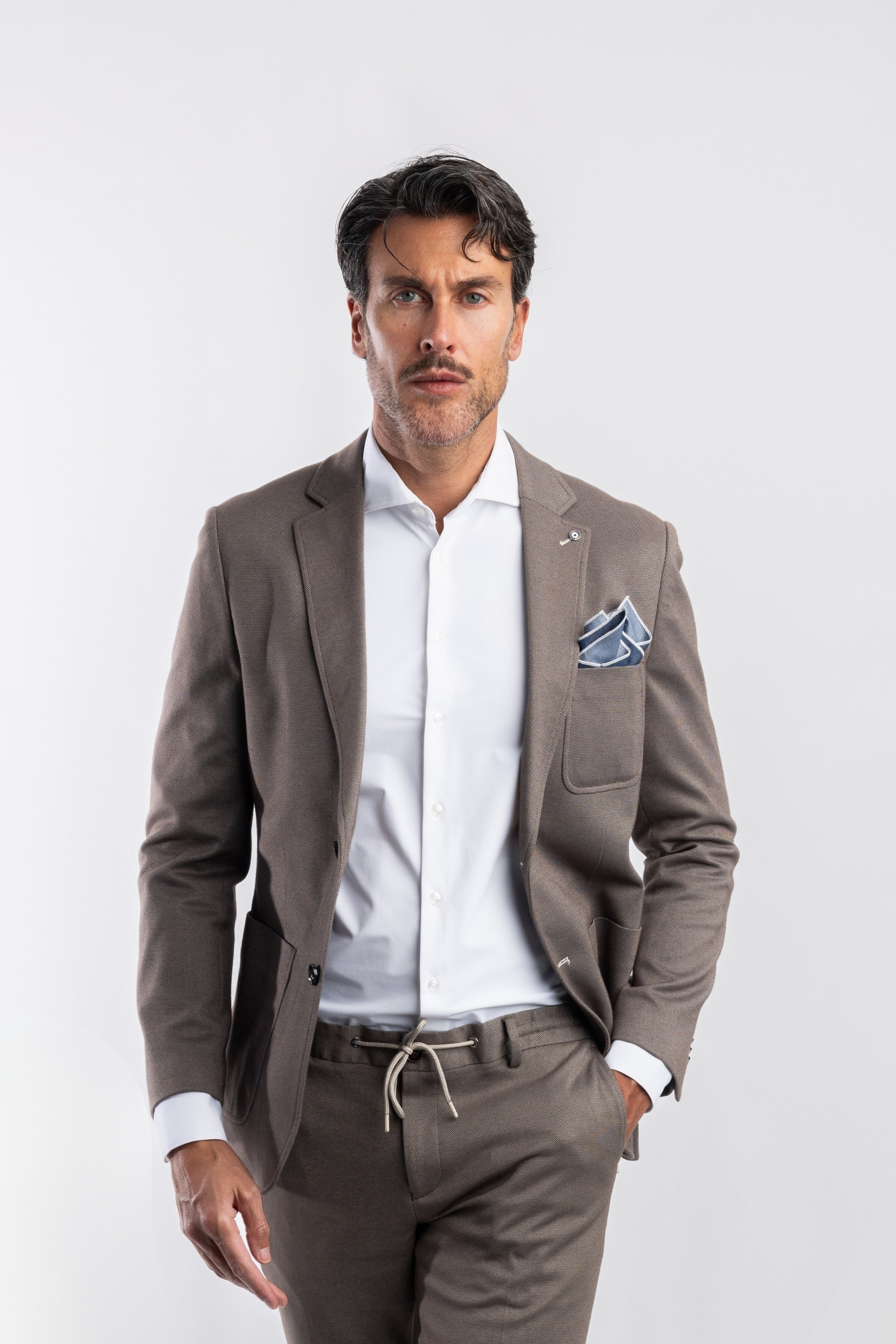 Dit lichtgewicht jersey colbert is de beste keuze voor de man die zowel comfort als stijl belangrijk vindt.