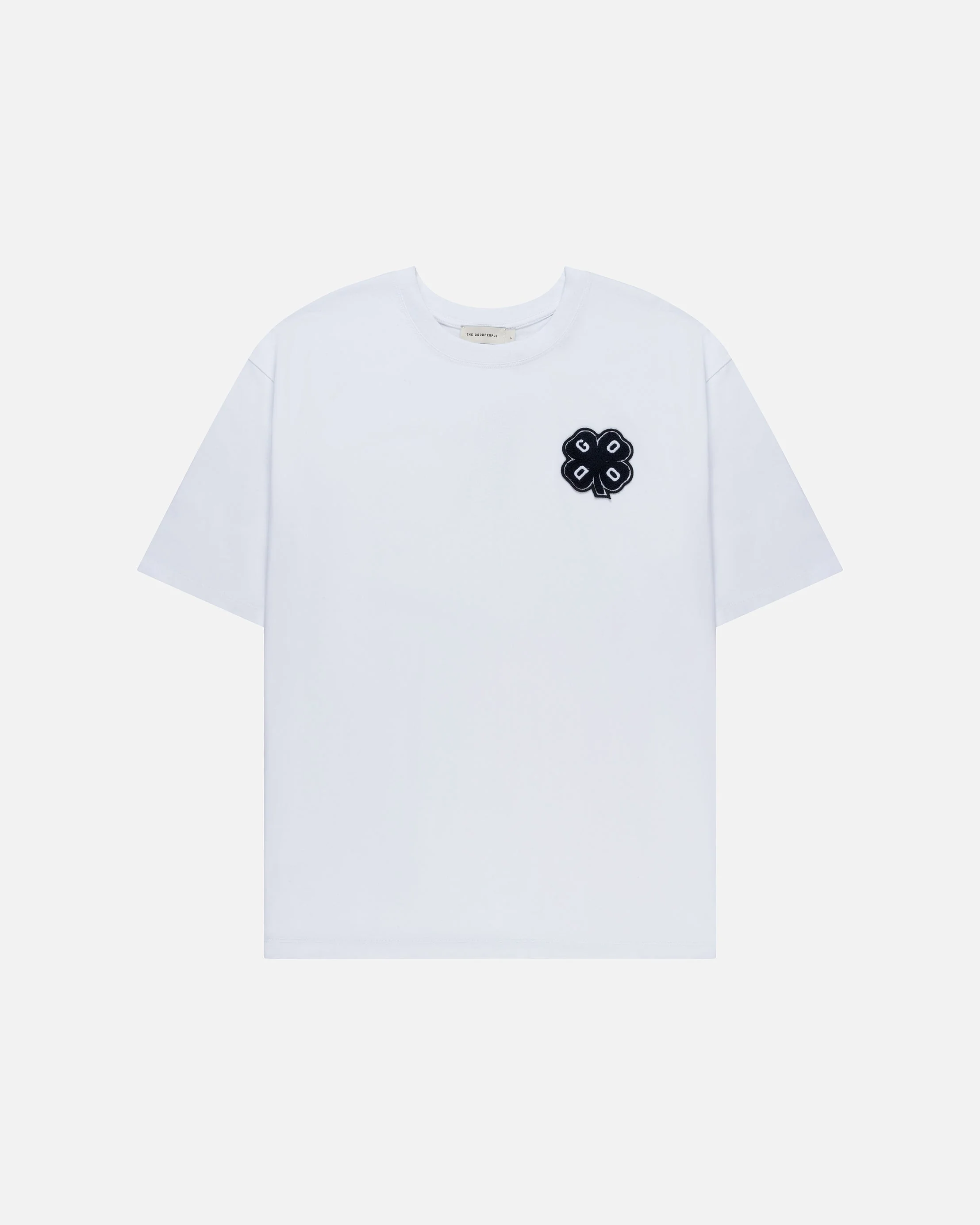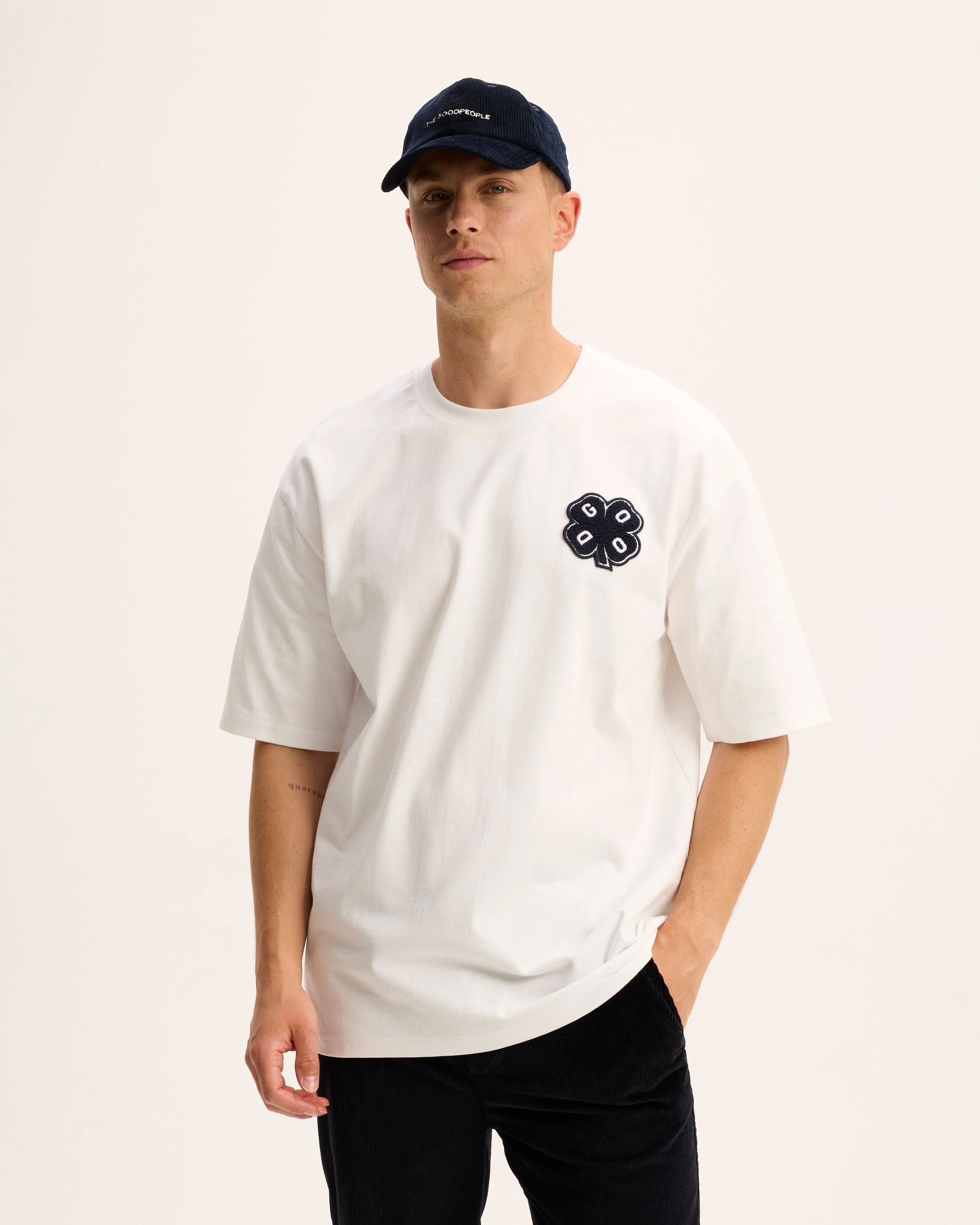 Maak kennis met Togan, een relaxed fit T-shirt met een geborduurd klavertjevier. Een klein geluksmomentje, gevonden tijdens een rustige wandeling door het park.