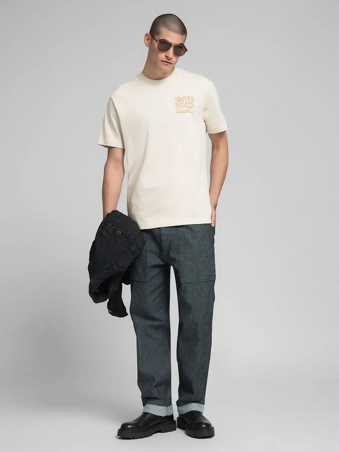 T-shirt met ronde hals van zware katoenen jersey. Dit relaxed-fit T-shirt voor heren is versierd met een geborduurde, gepersonaliseerde tekst op de voorkant. Dit ontwerp wordt gecompleteerd door het iconische label met ons archieflogo op de mouw.