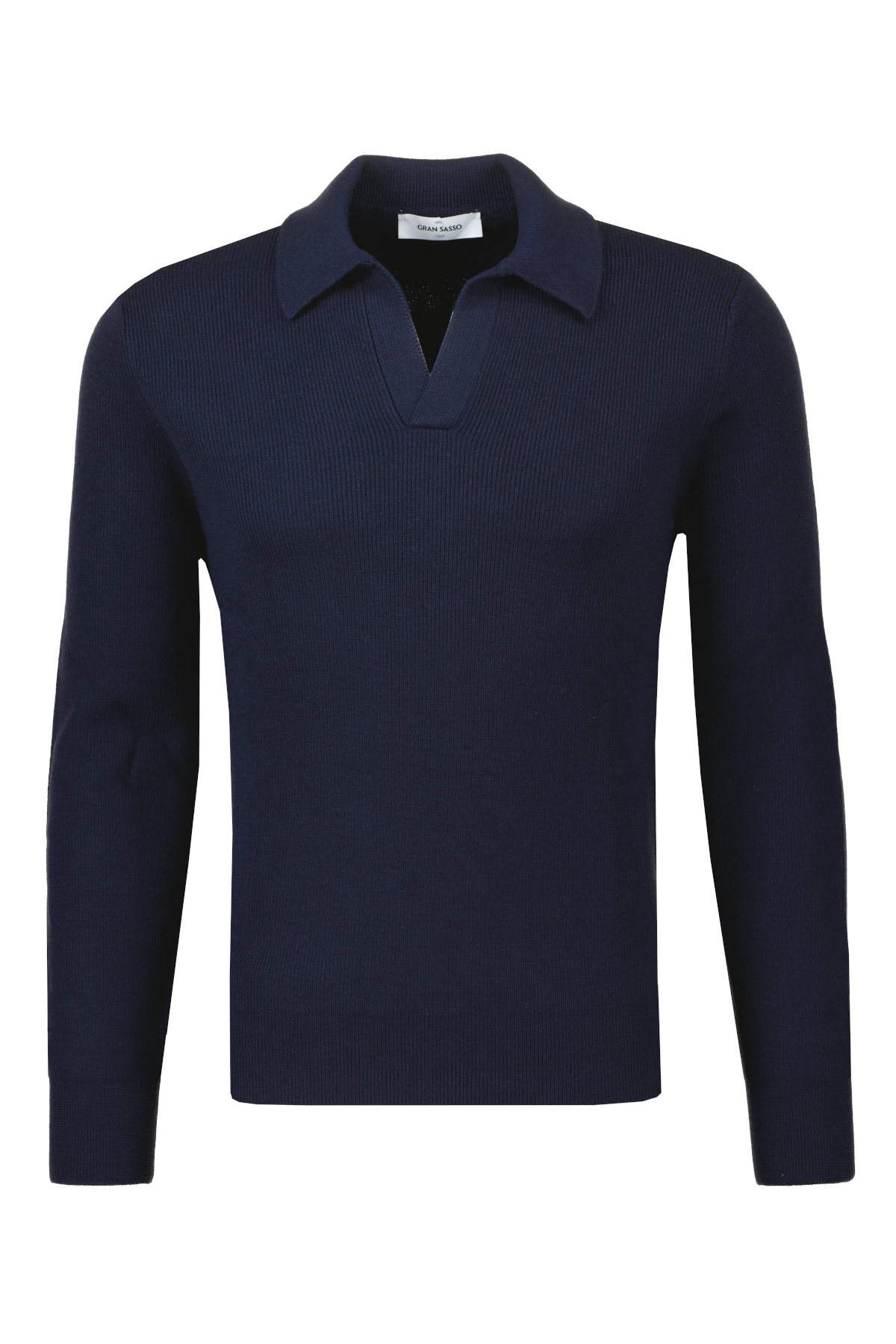 Donkerblauwe trui voor heren van Gran Sasso. Gemaakt in Italië van extrafijn merinowol.
