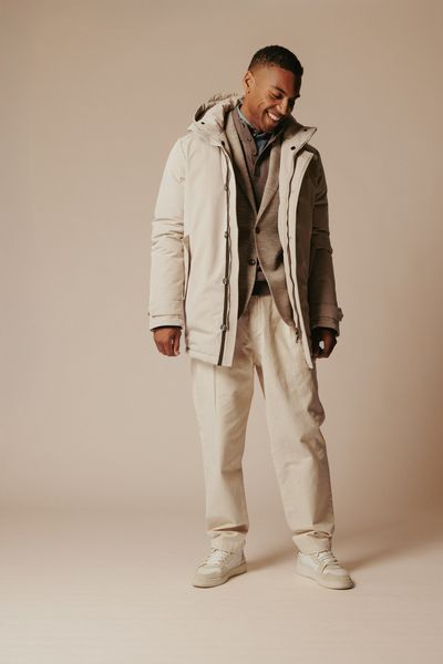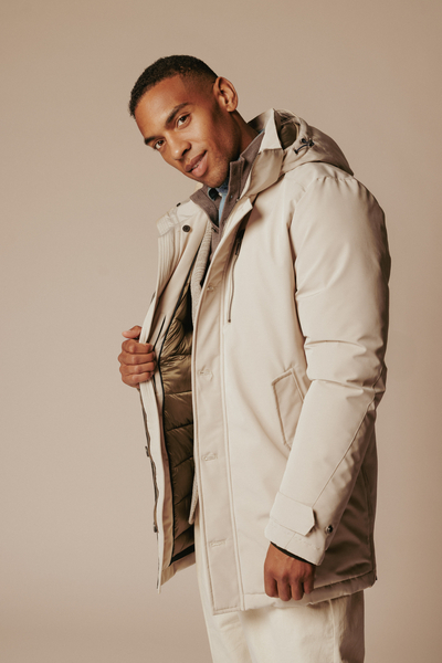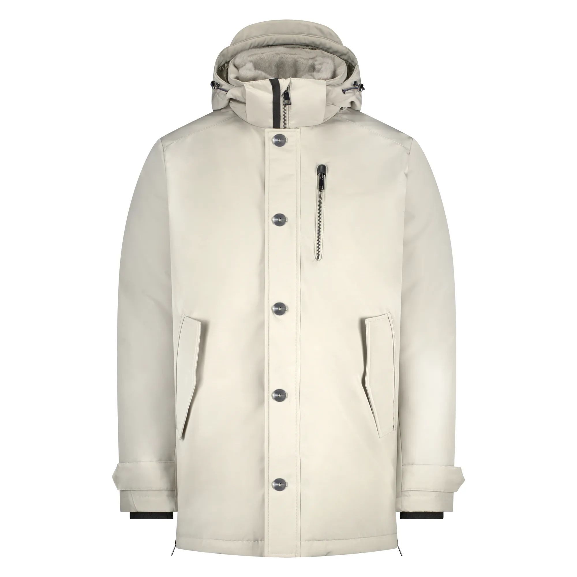 Sportieve parka met afneembare imitatie bontkraag en cappuchon.