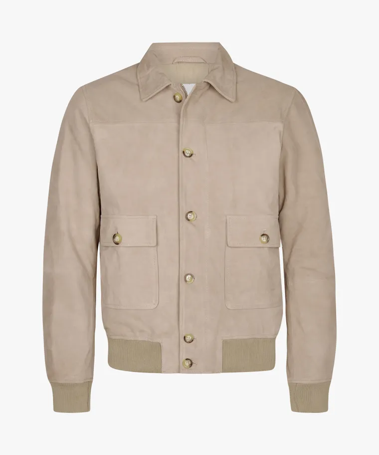Deze bomber is gemaakt van 100% geitensuède en heeft een boxy fit voor een eigentijdse, ontspannen look. Voorzien van een knoopsluiting, twee ruime zakken en ton-sur-ton ribboorden. De rijke textuur en tijdloze uitstraling maken dit een veelzijdig key piece in elke garderobe.
